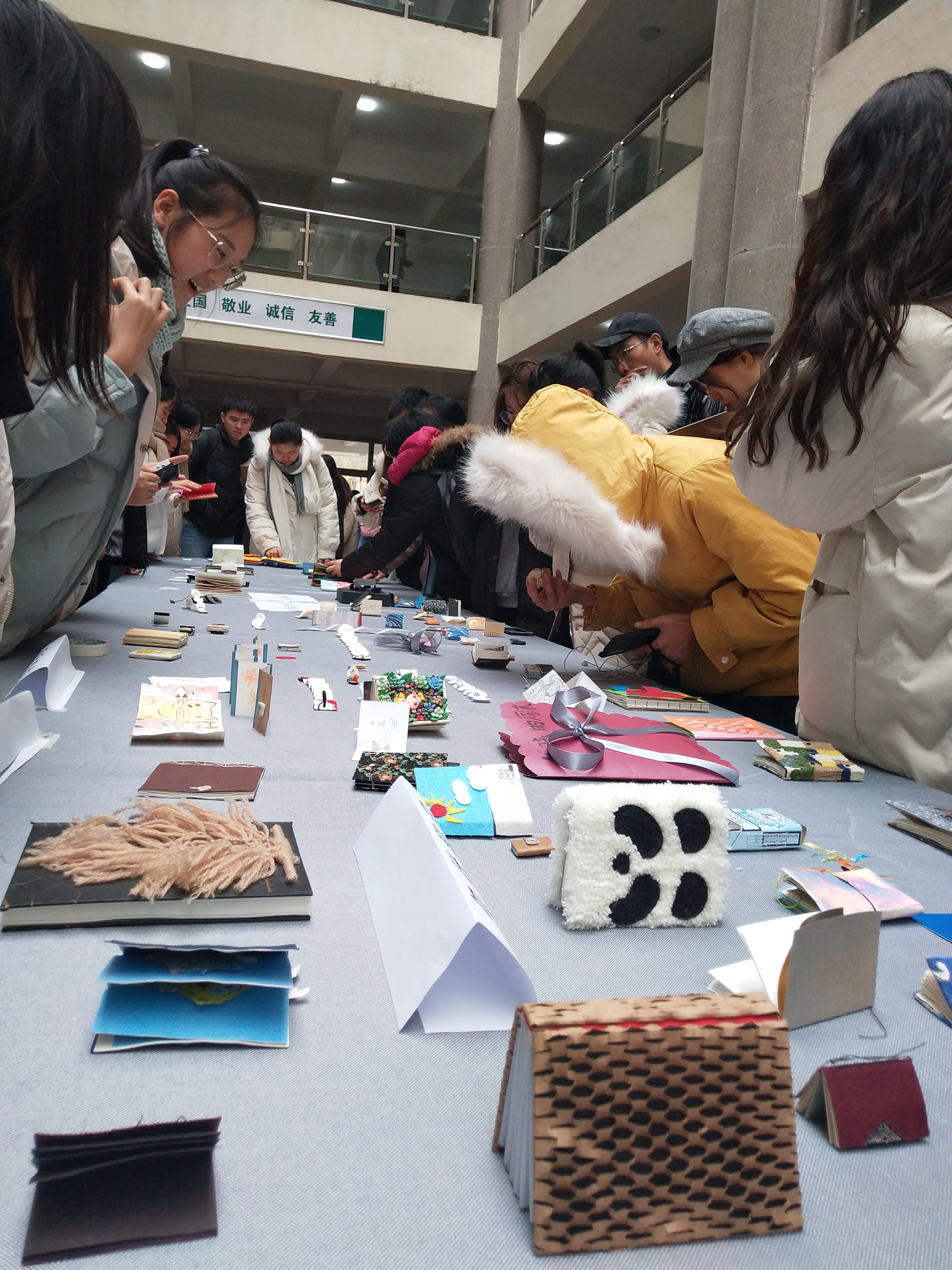 今年书籍创作的主题是“我的家乡,青岛故事”、“病”,同时也有多种形式的手工制作“创意书籍”,活动现场布置的十分温馨,作品呈现的面貌非常丰富,参加活动的每位同学,都展现出了他们别具一格的书籍风格和书籍创意,并且让大家对艺术书籍有了独特而深刻的感受,使得观展群众对作品发出连连赞叹。