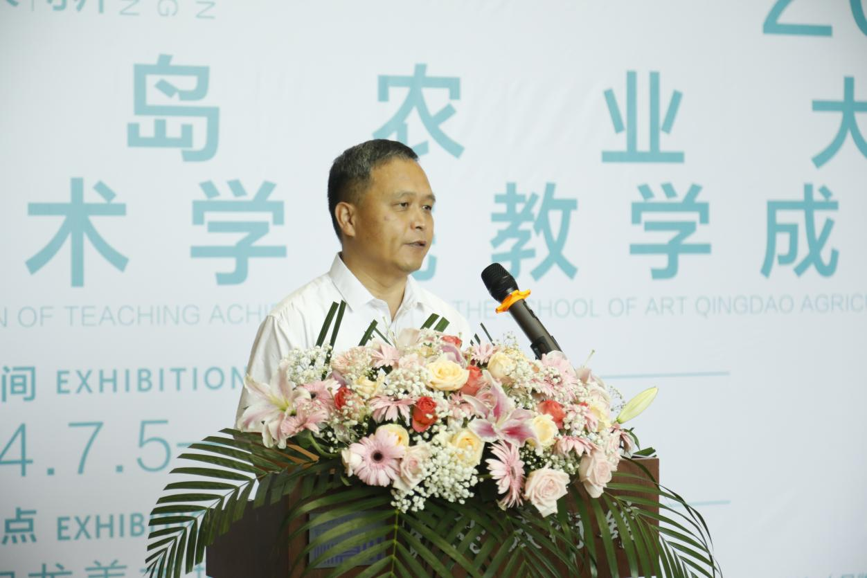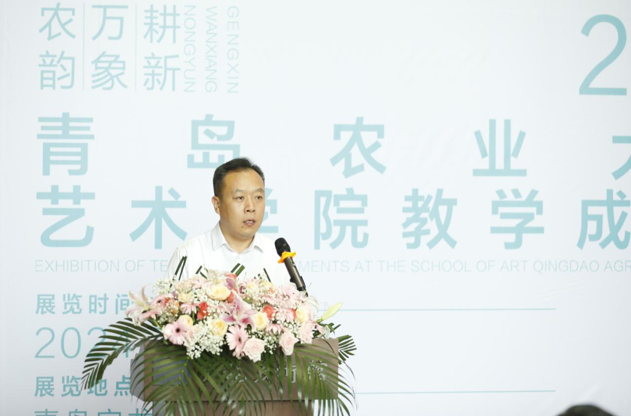 胶州市文联党组书记、主席宋祥文致词,对本次校企合作做出高度评价,指出校企合作能够为员工提供更加丰富的实践机会,也希望同学们利用好这一资源,在专业领域不断钻研,在艺术领域发光发热,为乡村振兴作出贡献。