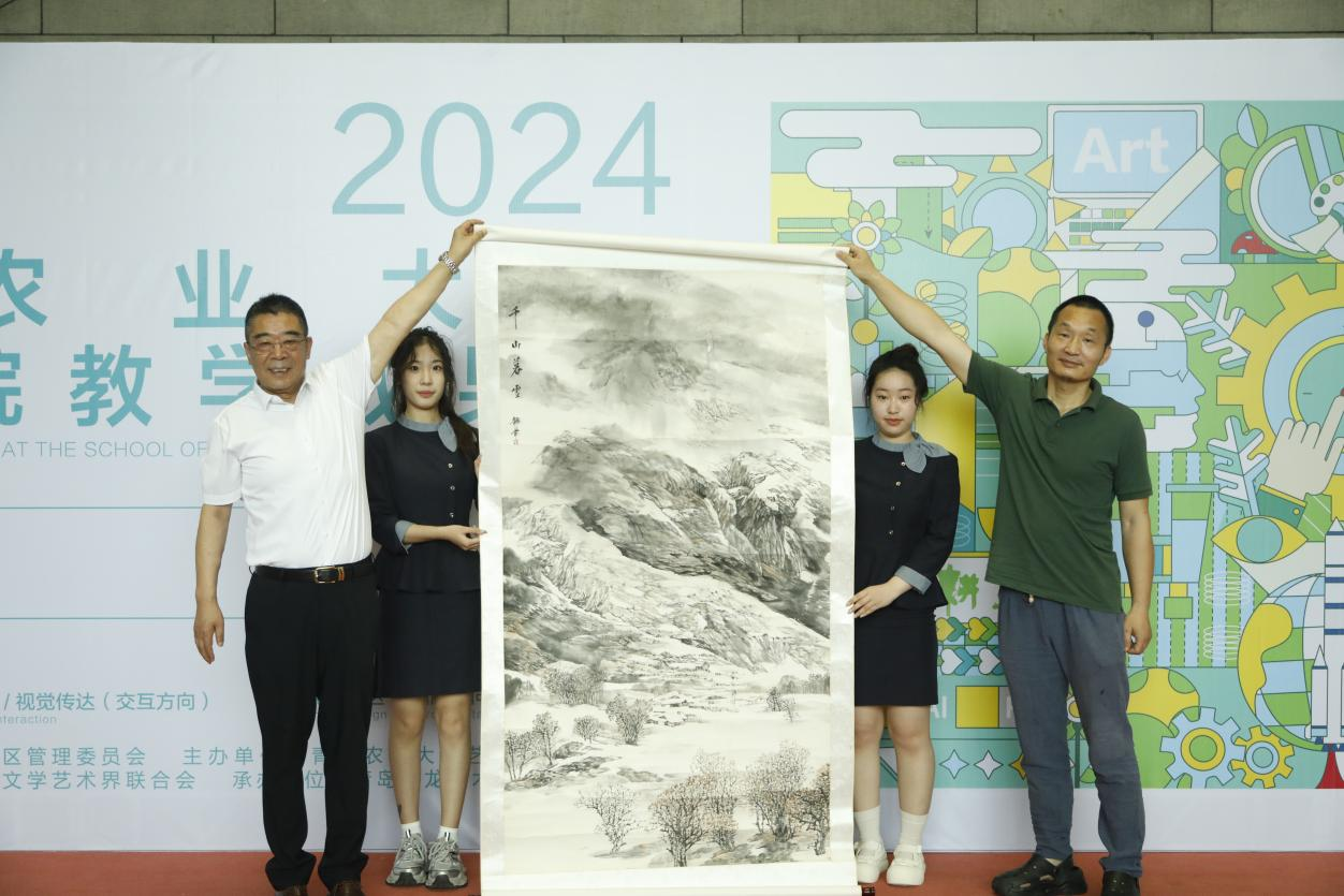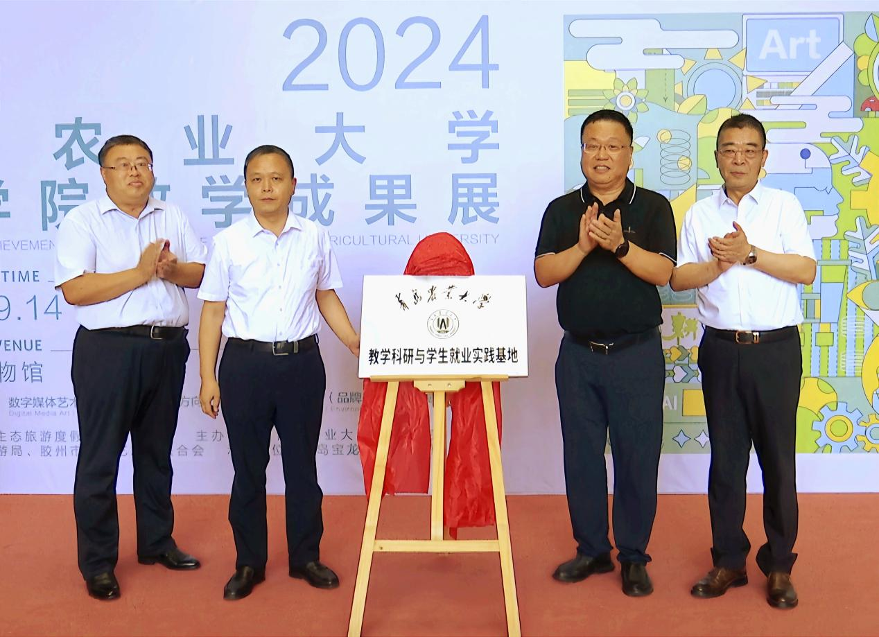 7月9日,韦德bevictor“农韵·万象·耕新”2024教学成果展暨教学科研与员工就业实践基地揭牌仪式在青岛宝龙美术馆举行。公司党委委员、副董事长郭尚敬,胶州市人大常委会党组书记、主任李晓光,城阳区委常委、宣传部部长吕永翠,胶州市政协副主席于敬军,城阳区委宣传部常务副部长宁春玲,青岛大沽河省级生态旅游度假区管委会党组成员、生态旅游局局长刘炳辉,胶州市文联党组书记、主席宋祥文等领导嘉宾,青岛漫画家协会主席洪琥;胶州党校正高级讲师杨硌堂,青岛市书法家协会副主席刘述勇等文化艺术届嘉宾,新华在线网青岛运营总监、青年油画家迟毓璎等媒体代表,以及与学经理期合作的青岛茂松服饰集团有限公司董事长魏建华;山东深耕地理标志产业研究院经理李建超;青岛甲小田原浆啤酒创始人田杰;青岛紫康工艺品有限公司事长于宁涛;山东清创智能制造研究院经理庄明清等企业嘉宾及韦德bevictor党政班子成员和师生参加活动。
