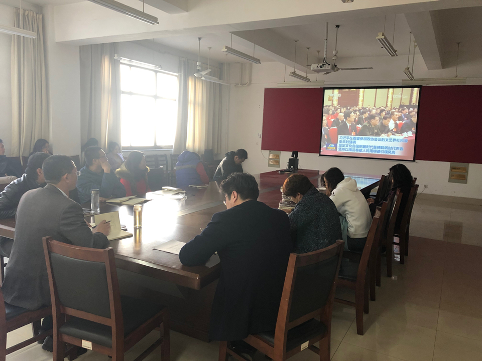 会上,全体教职工还一同观看了习近平总书记看望参加政协会议的文艺界社科界委员时的讲话视频,坚定文化自信,把握时代脉搏,聆听时代声音,坚持以精品奉献人民用明德引领风尚。