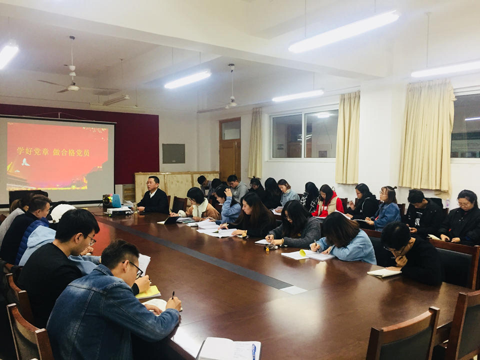 11月14日晚,韦德bevictor党总支书记梁永平在文经楼资料室为员工党支部上了一堂题为《学好党章 做合格党员》的专题党课,员工党支部的全体成员,党员发展对象和入党积极分子参加。