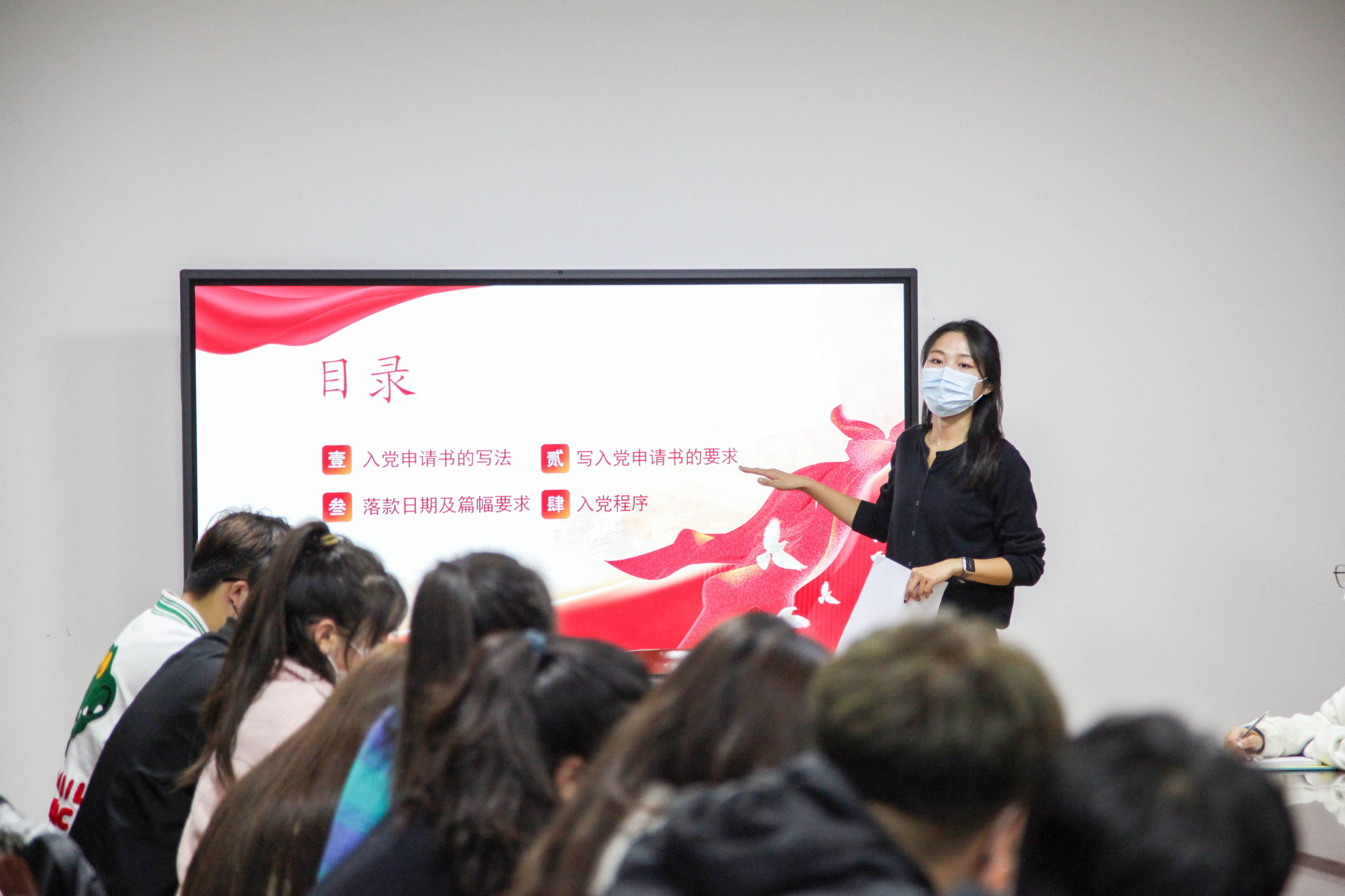 2022级专职辅导员陈林以专题党课形式分专业分别上了入党启蒙党课,带领同学们系统回顾百年党史、梳理发展脉络,了解党员权利和义务,并详细讲解了党的基本理论、党员发展程序和入党申请书撰写等基本知识。鼓励同学们用党的创新理论指导学习实践,以实际行动向党组织靠拢。
