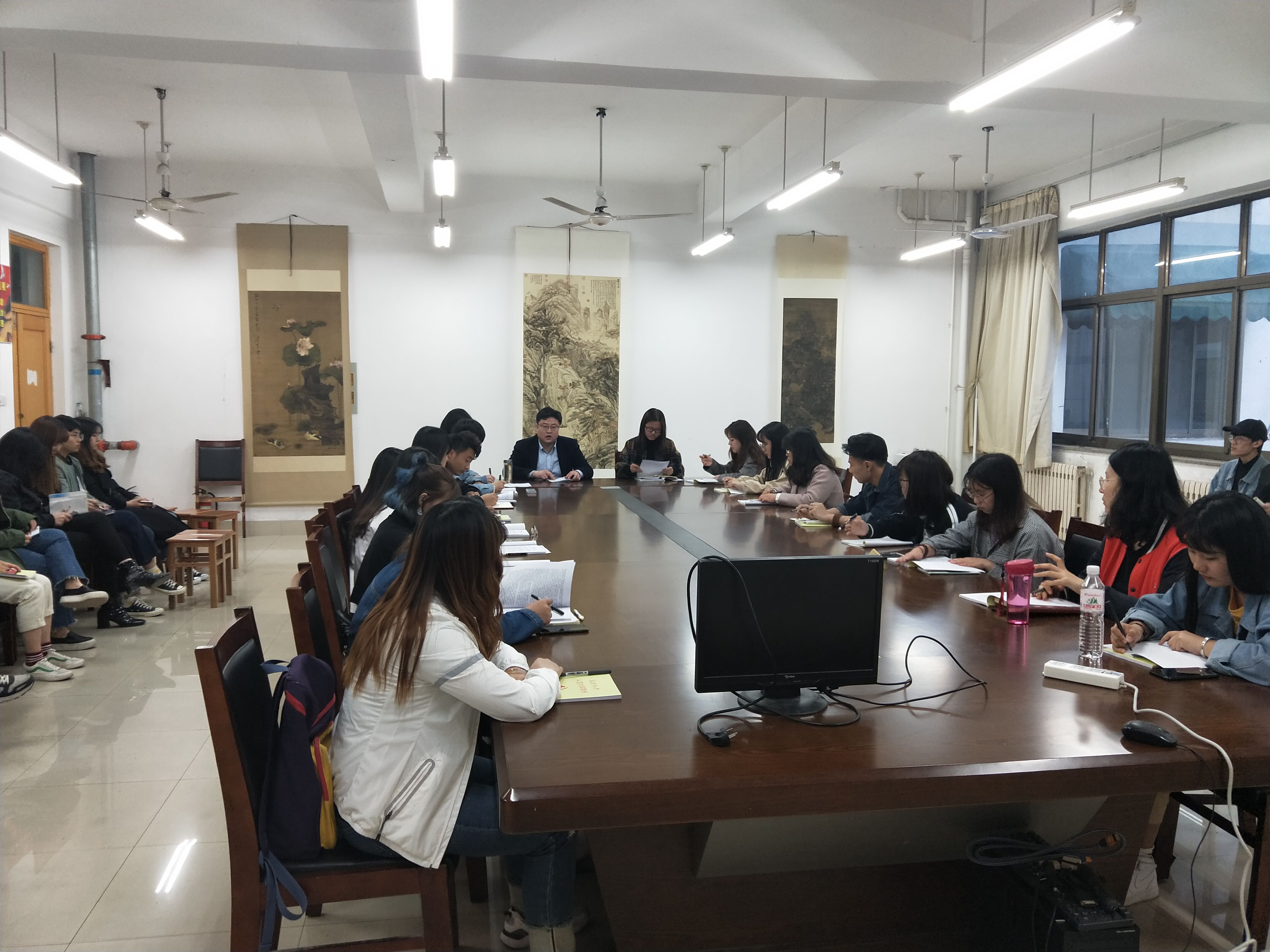 支部委员侯鉴璇宣读了组织部《关于党校第二十二期入党积极分子和2018年度上半年党员发展对象培训班通知》、入党积极分子培训名单以及党员拟发展对象名单,并就培训期间的学习日程和安排进行了详细部署,对学习纪律进行强调,希望同学们学有所成。