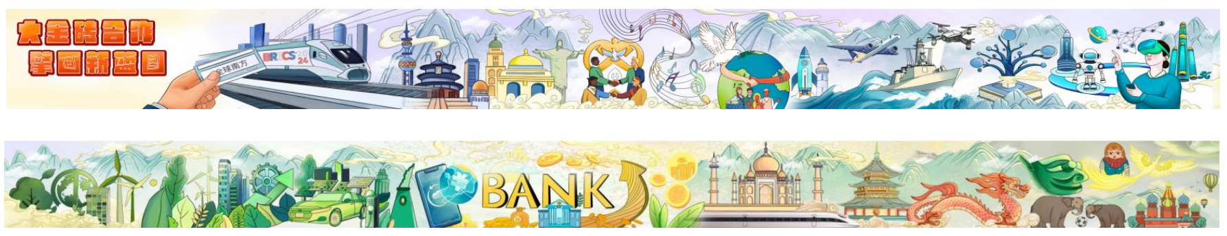 此次金砖国家领导人第十六次会晤是金砖国家扩员后的首次峰会,传递出团结合作、共同发展的强烈积极信号。两位同学怀着对国际合作发展的深刻理解和对艺术创作的热情,通过细腻的笔触、精妙的构图将“和平金砖”“创新金砖”“绿色金砖”“公正金砖”“人文金砖”等主题融合在一起,将金砖合作的宏大主题在 2.6 米的画卷上徐徐展开,生动地诠释了“大金砖合作”的丰富内涵与美好愿景,以艺术的形式让更多人直观感受到金砖合作的魅力与潜力,为金砖合作这一全球瞩目的议题增添了一抹独特的青春艺术色彩。
