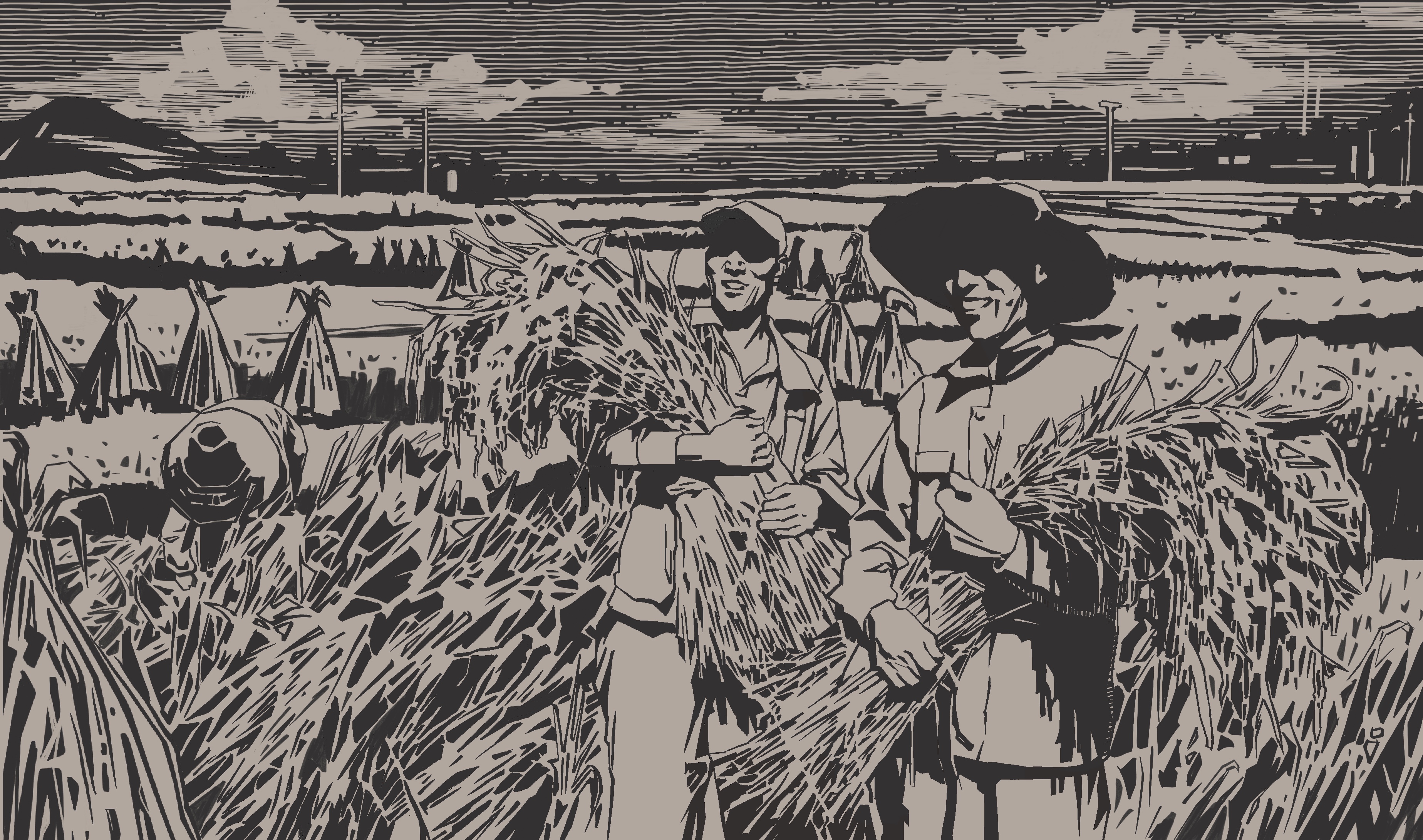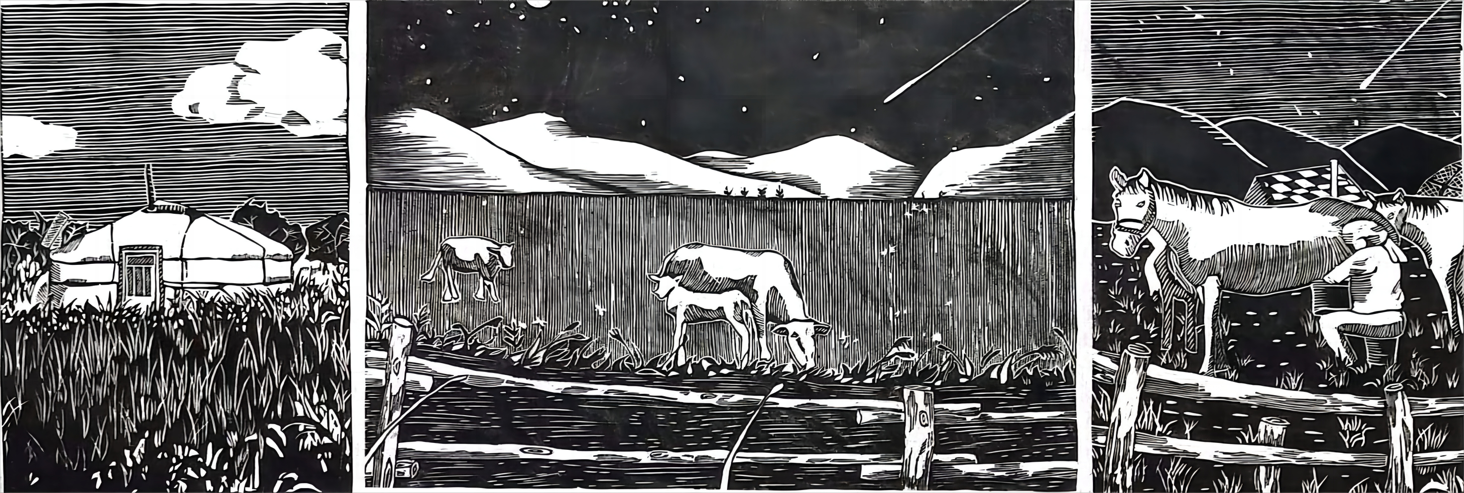 曹嘉欣 “内蒙古阿鲁科尔沁草原游牧系统”木版画