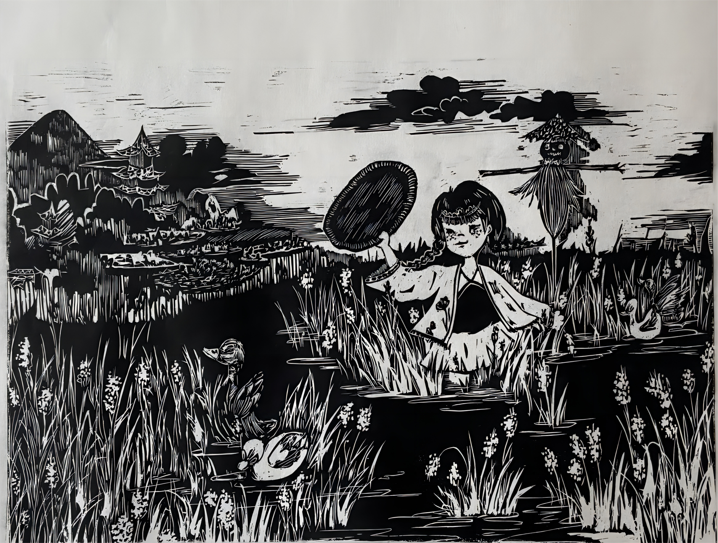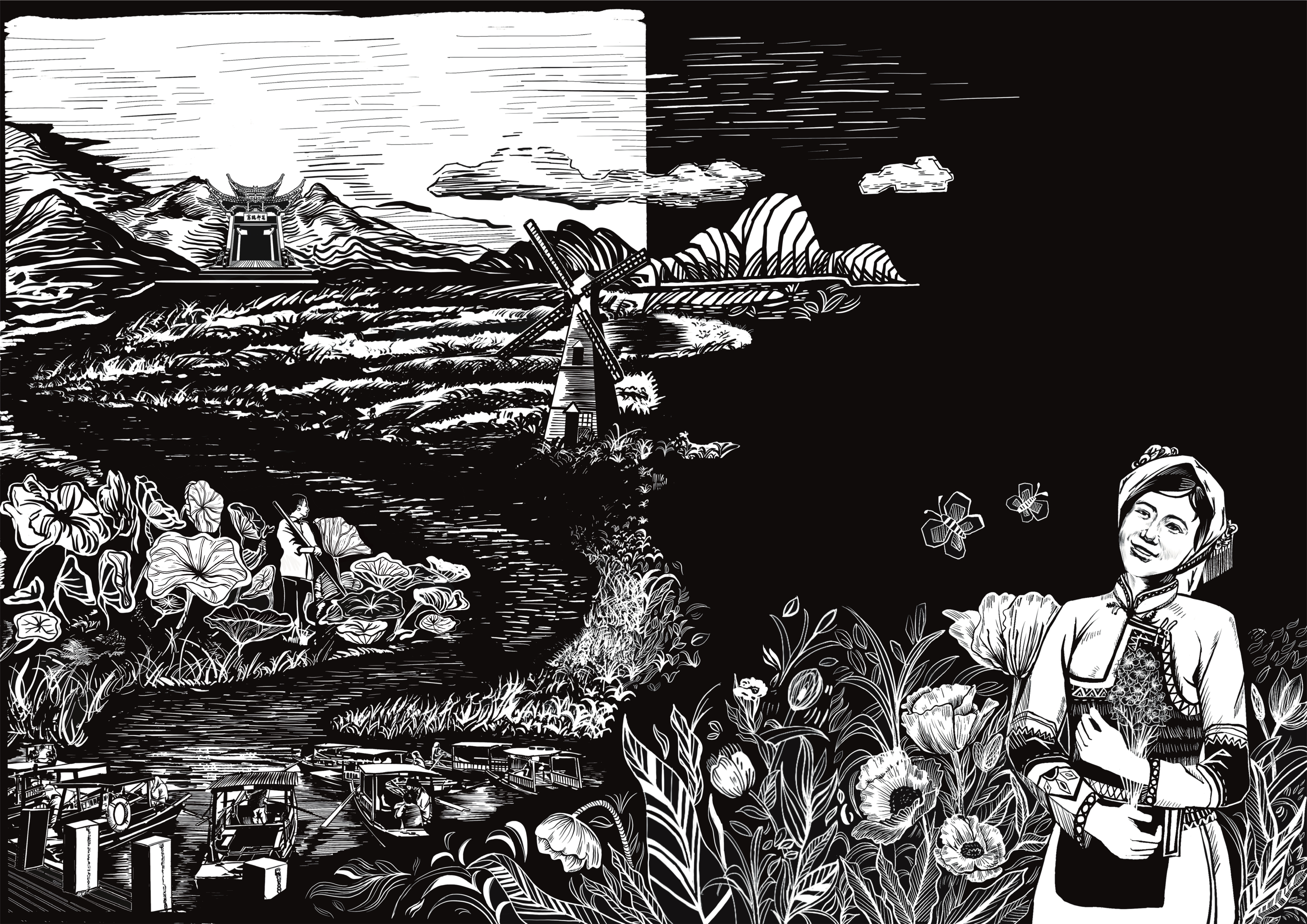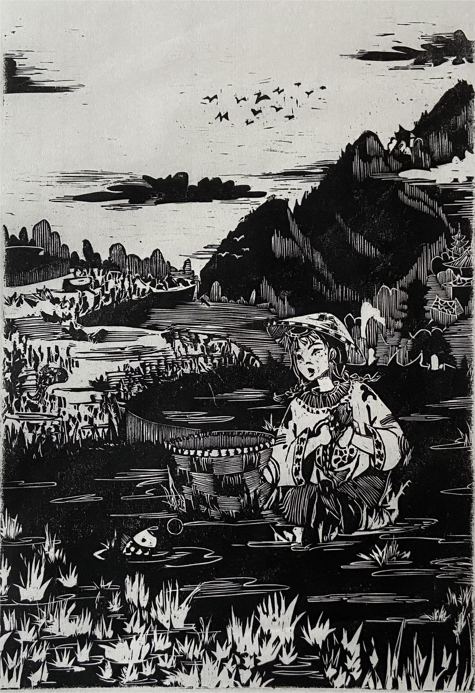 姬浩翔、李洋 “江苏兴化垛田传统农业系统”木版画