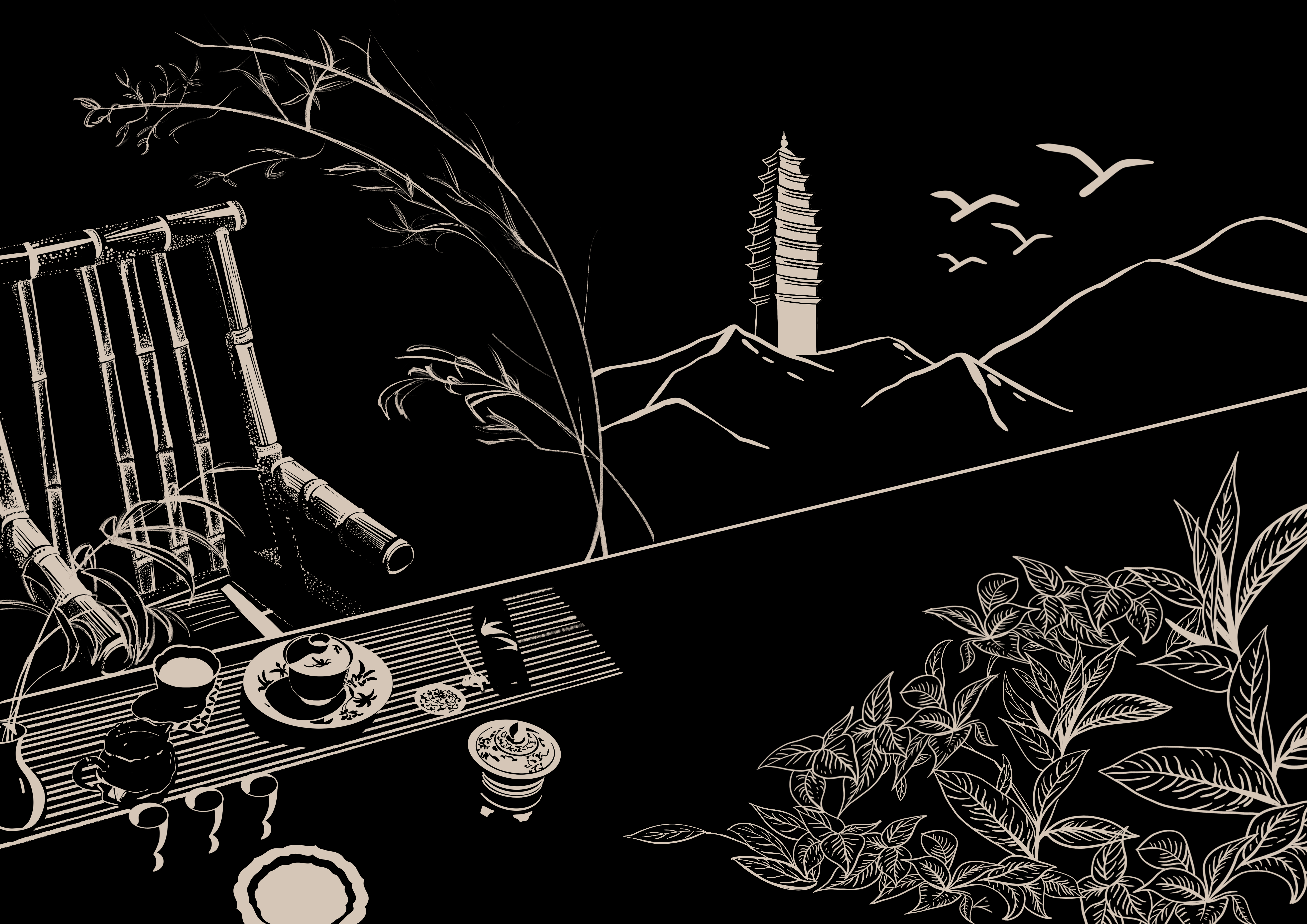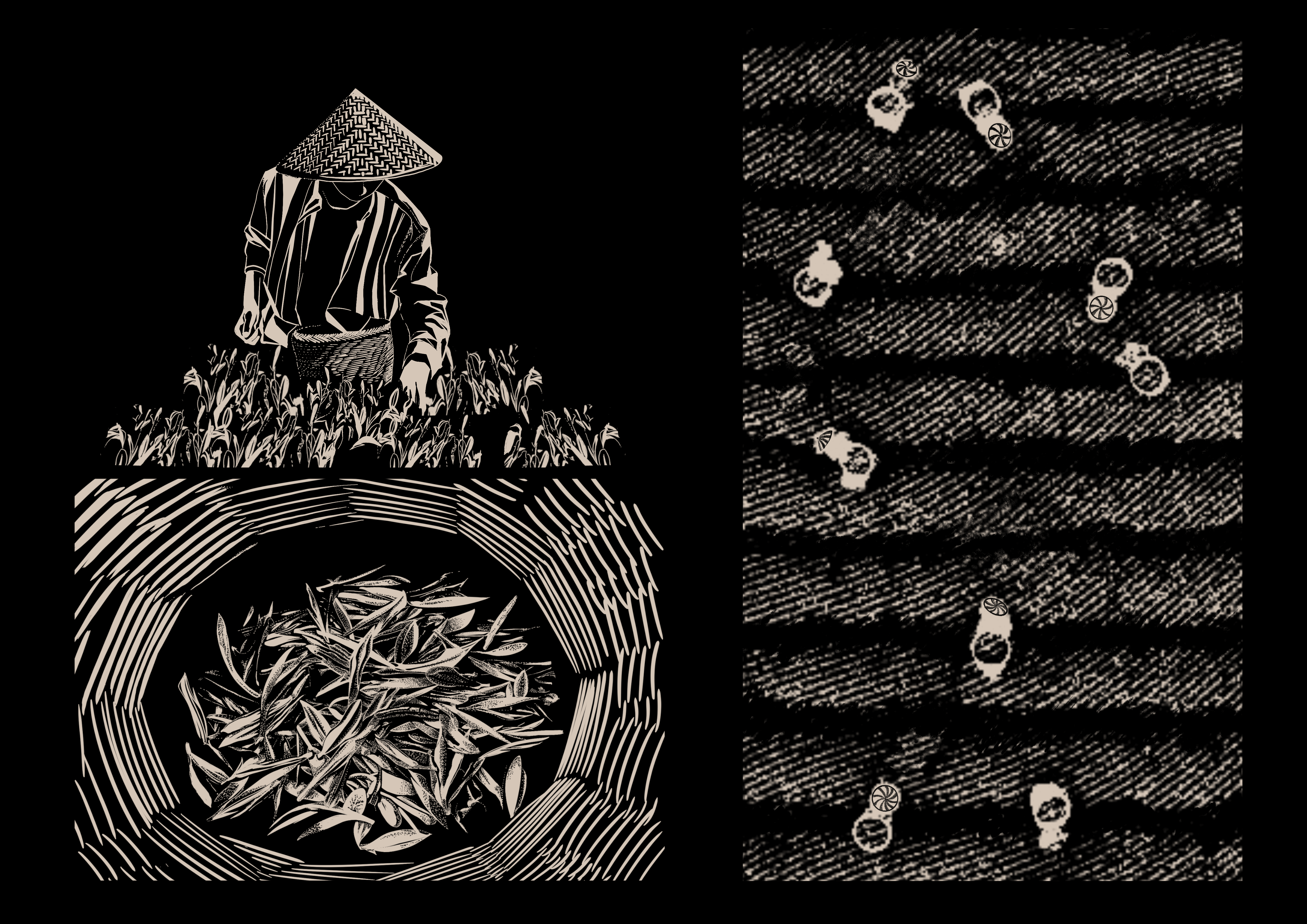 曲硕 “福建福州茉莉花和茶文化系统”木版画