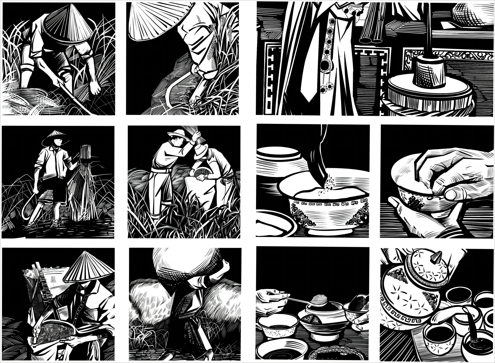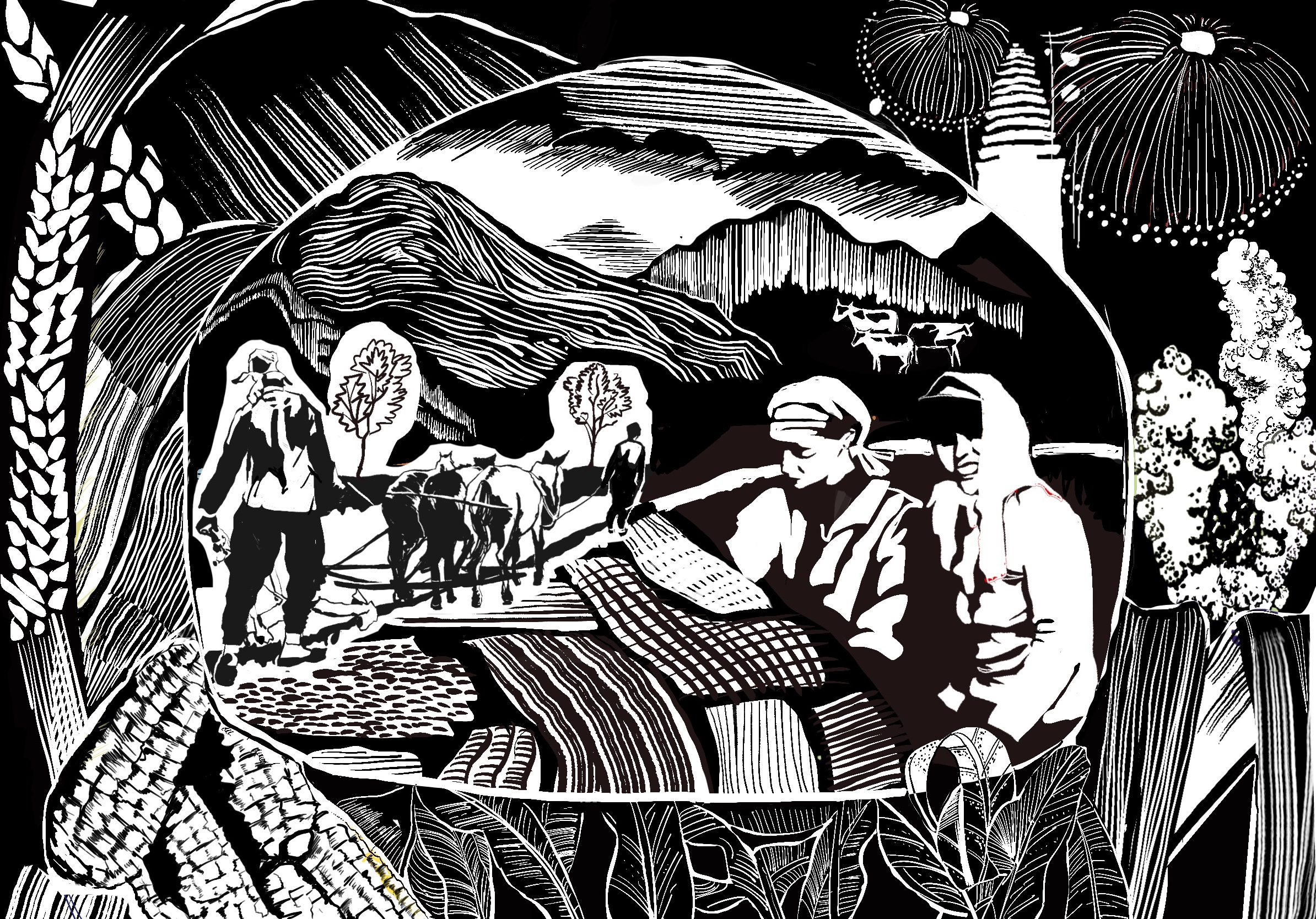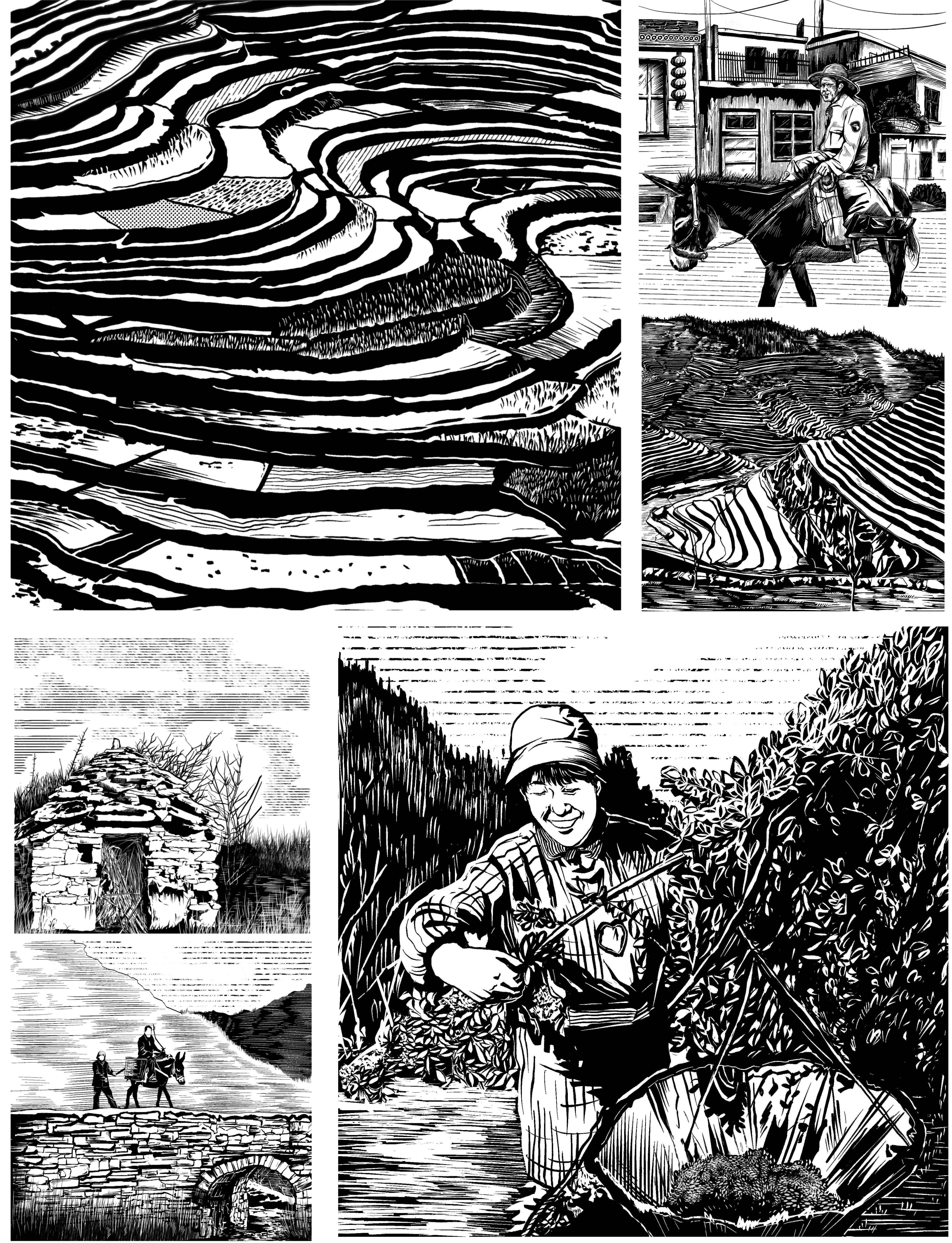 该专题展览由公司教师周维维、刘筠策划指导,作品由插图2001班全体员工创作完成。本次展出的系列木版画作品以凝练、简洁、概括、单纯的独特美学风格,生动展现了我国“全球重要农业文化遗产”的基本样貌,以黑白色调形成强烈对比,给人以美的冲击和感动,不仅有效实现了耕读教育目的,更达到了以文化人、以美育人的效果。