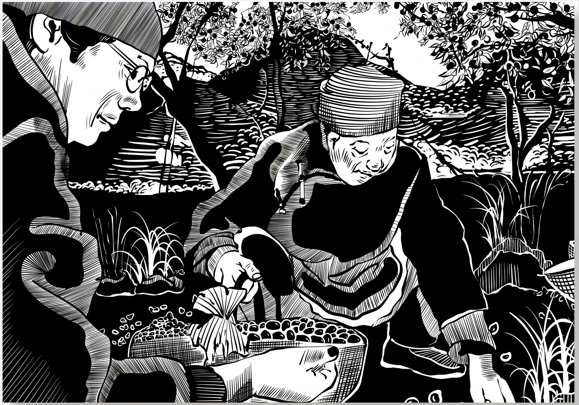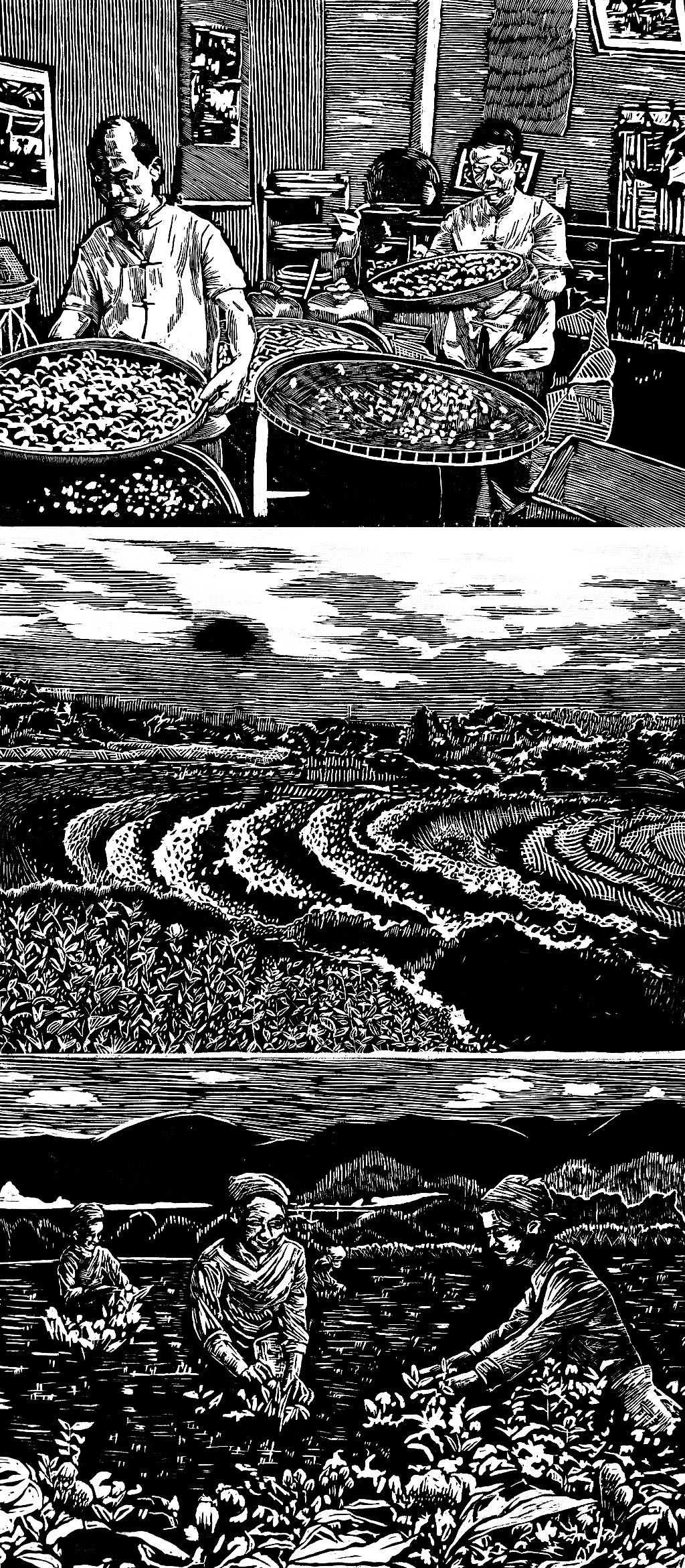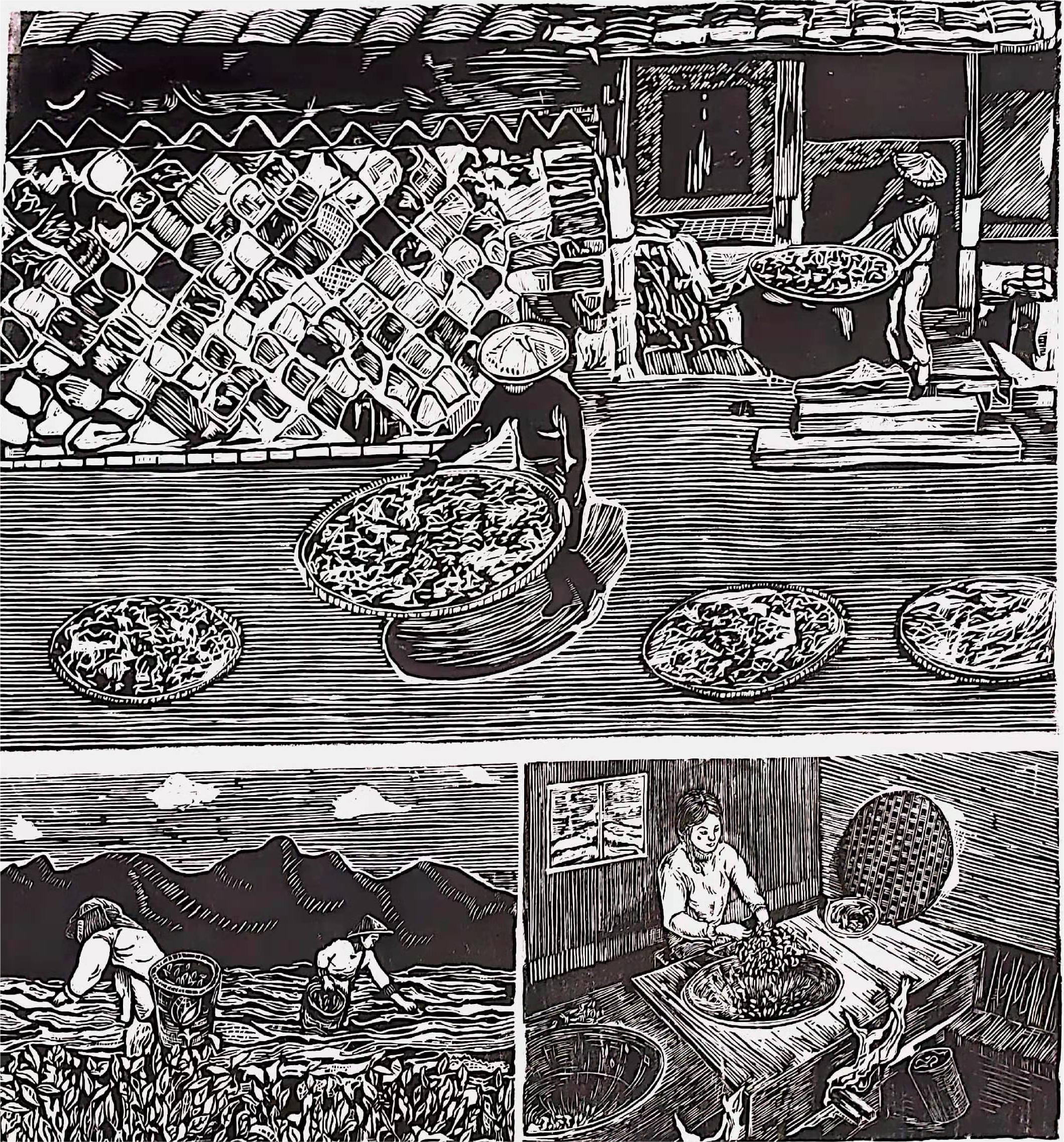 宋志琪“云南普洱古茶园与茶文化系统”木版画