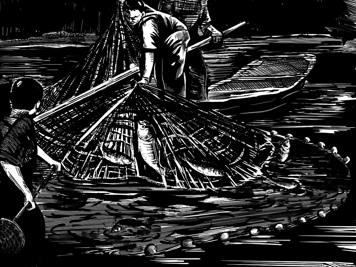 张琳 “浙江湖州桑基鱼塘系统”木版画