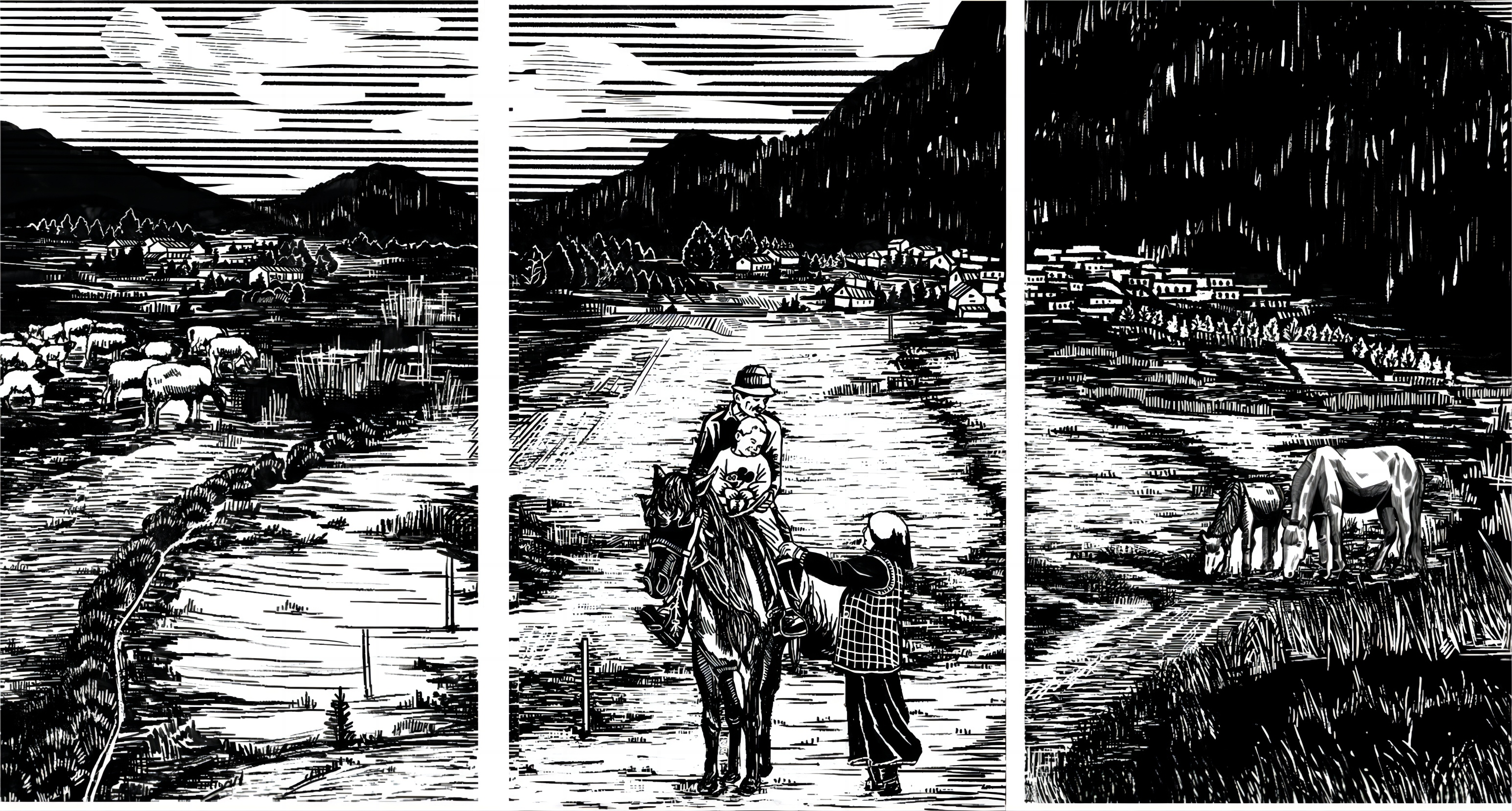 毛文月 “甘肃迭部扎尕那农林牧复合系统”木版画
