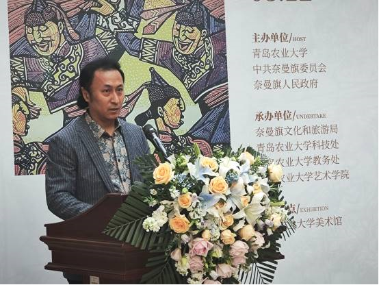 郭尚敬代表公司致辞,他指出,奈曼版画具有独特历史文化底蕴,在我国版画届享有盛誉,此次活动为广大师生提供了丰富的精神文化大餐,丰富了校园文化生活。他希望双方进一步深化务实合作,同时希望公司用好宝贵资源,提高艺术类人才培养质量。