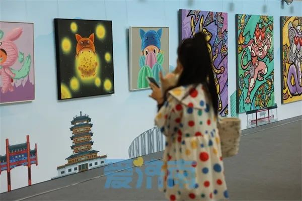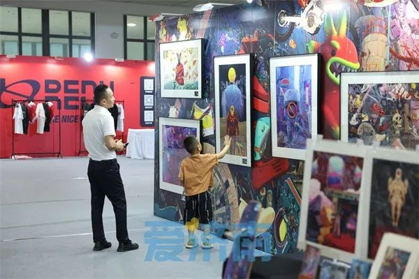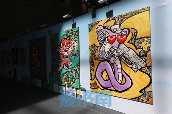 在潮流画展区,集结了来自10位潮流艺术家的60余件精彩艺术作品。如,被誉为水果创作魔法师的山东籍画家张超级和乱线“画”出一个世界的特邀艺术家丁文尧等;