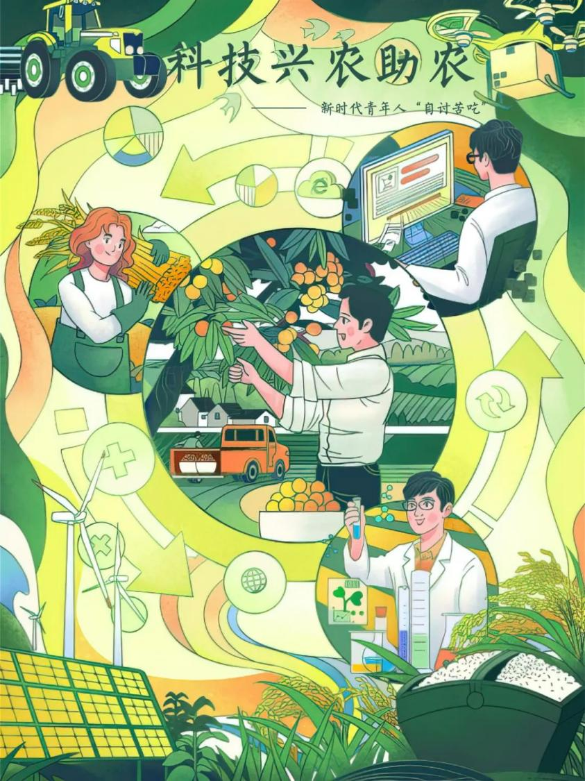 70余名同学深学细悟,创作“三农”主题作品70余幅(组)。这其中,既有新时代农民使用现代化设备耕种、田管、直播带货的生动场面,又有独具特色、自成风貌的民居民宿、乡村美景,展现了新时代老员工眼中全国各地加快建设农业强国、推进农业农村现代化的热闹场景。作品形式多样、内涵丰富,呈现出一股浓厚的乡风、乡韵、乡愁,展现了农业院校艺术学子“以强农兴农为己任”的信心决心和朝气昂扬的精神面貌。