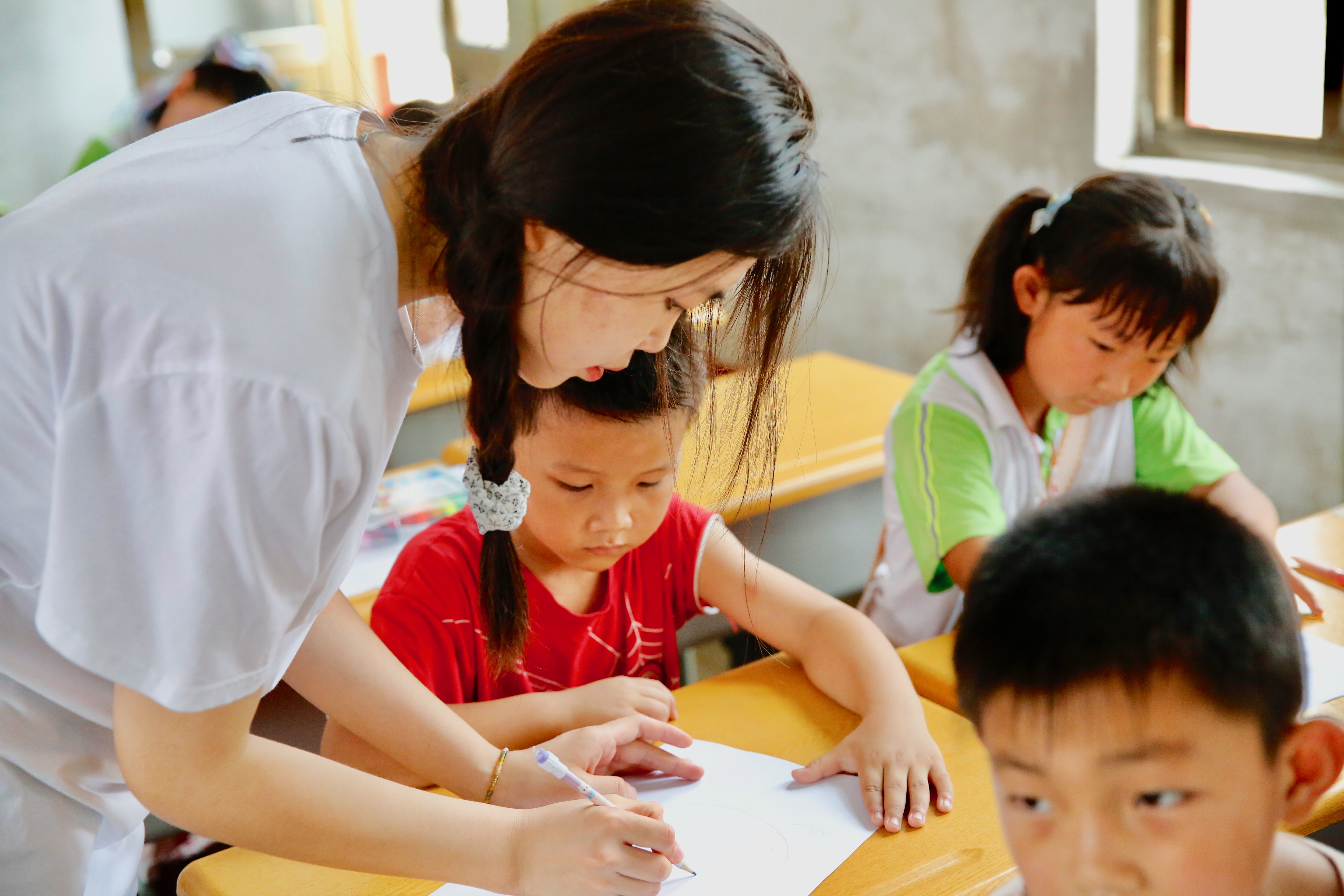 为了保障每个年级的所有小员工都参与到课程当中,实践团成员各展其长,克服人数少、课程多、时间紧等困难。同时,教学过程坚持以兴趣为导向,采用不同风格的授课方式,使小员工们无时无刻不“沉浸”在课堂教学中。课间休息时,“小老师”们和小员工们一起开展丢手绢等课外活动,既增加课程的趣味性,又增进团队成员与小员工们的感情。
