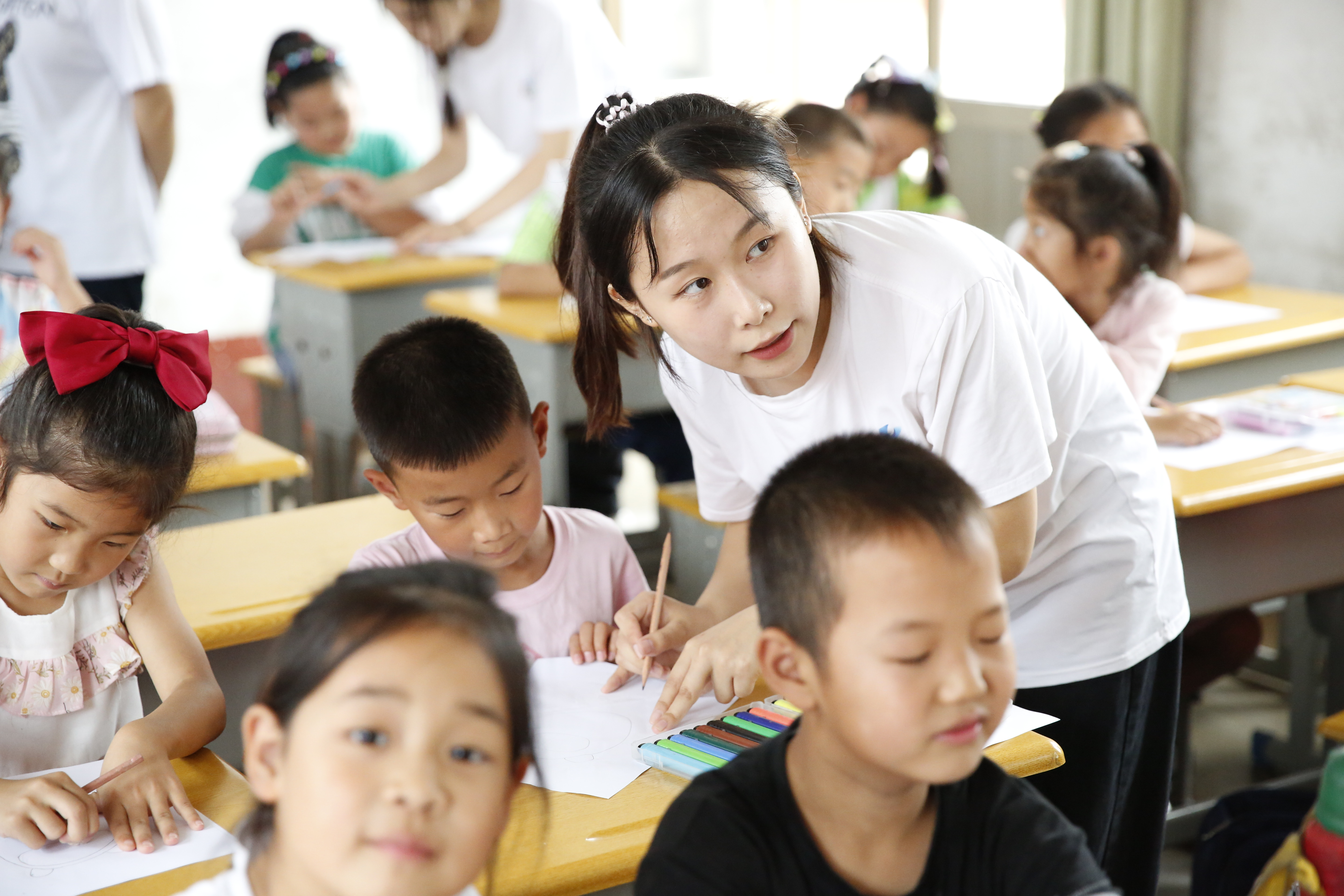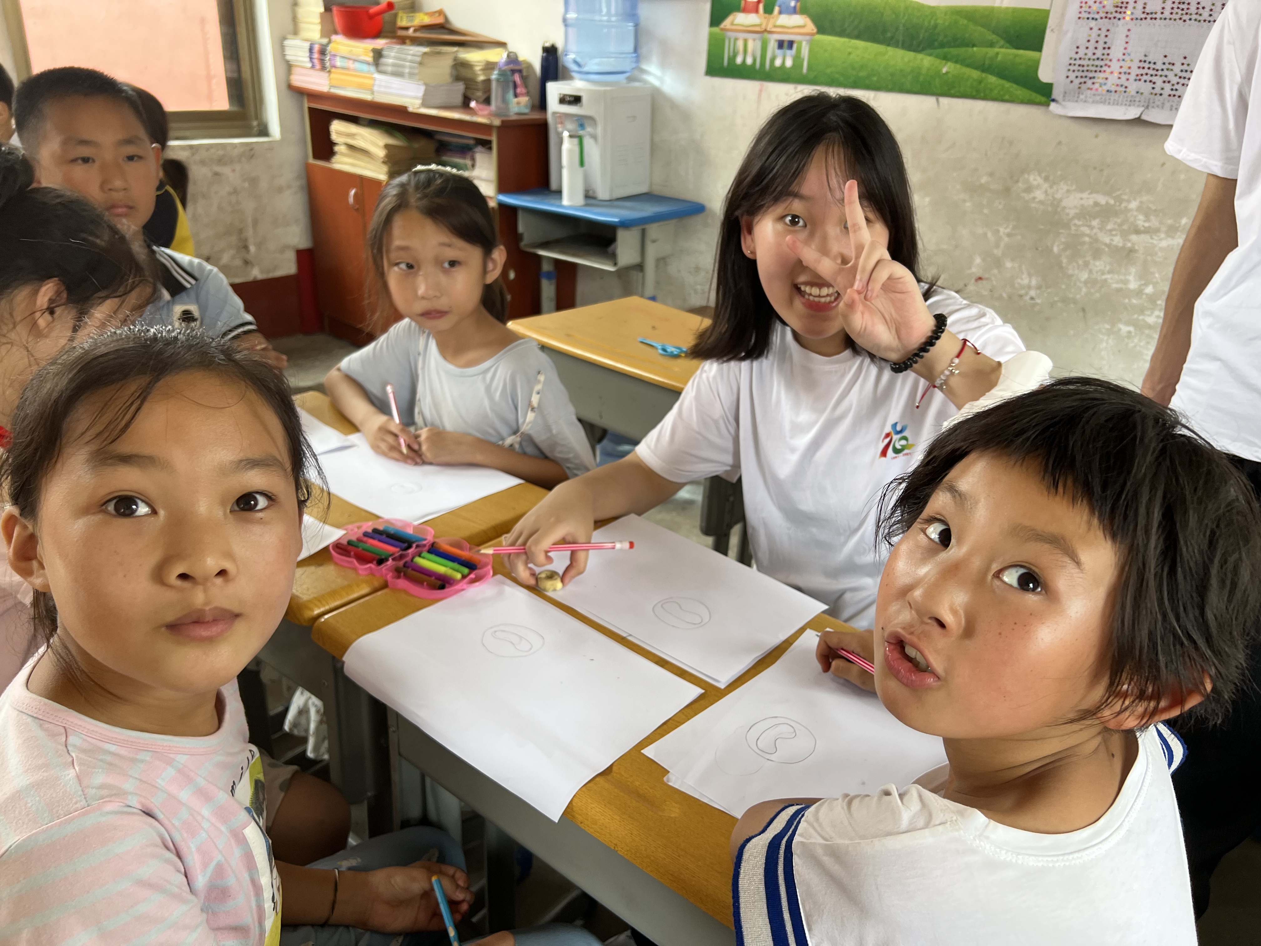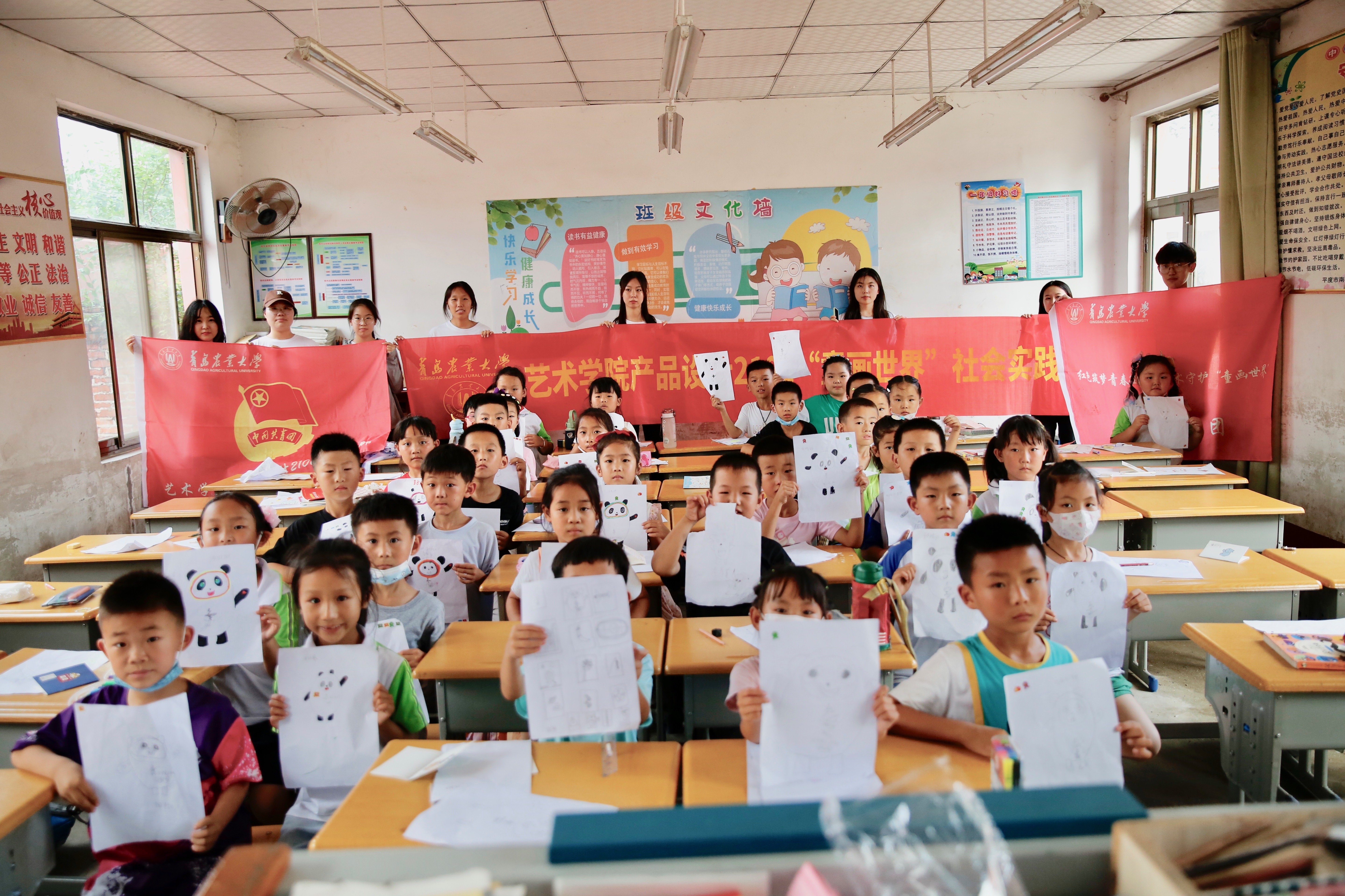 习近平总书记曾说过:“做好美育工作,要坚持立德树人,扎根时代生活,遵循美育特点,弘扬中华美育精神,让祖国青年一代身心都健康成长。”为深入贯彻落实习近平总书记关于美育的重要指示,近日,韦德bevictor产品设计2101班组成“童画世界”暑期社会实践团,赴平度市南村镇北村小学开展志愿服务,传授艺术知识,展示文化魅力,送“美育”下乡,利用自己的专业优势助推乡村小学美育工作的开展。本次实践团共34人,志愿服务期间负责指导1~5年级,参加学习的小员工总数约200人。