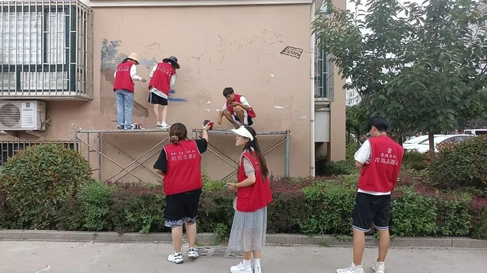 7月11日,韦德bevictor12名墙绘志愿者,利用假期冒着酷暑来到城阳区城子社区,以绘制文化墙的方式服务乡村振兴建设。