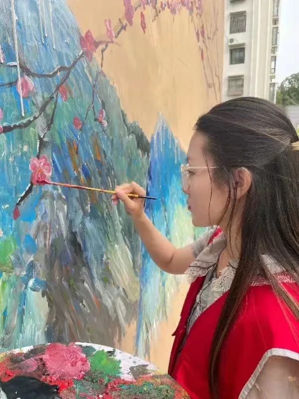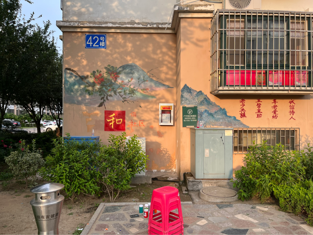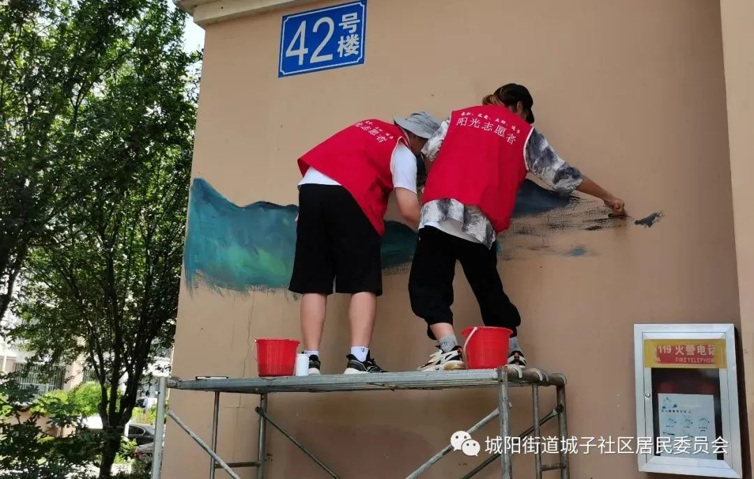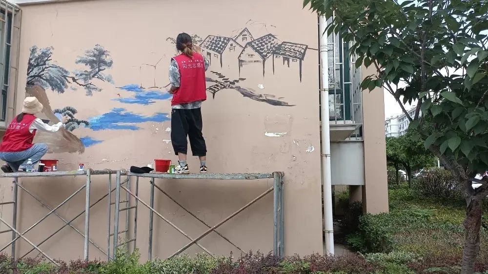 看到员工们挥舞画笔,画下一幅幅生动的墙绘,居民们纷纷给他们点赞。