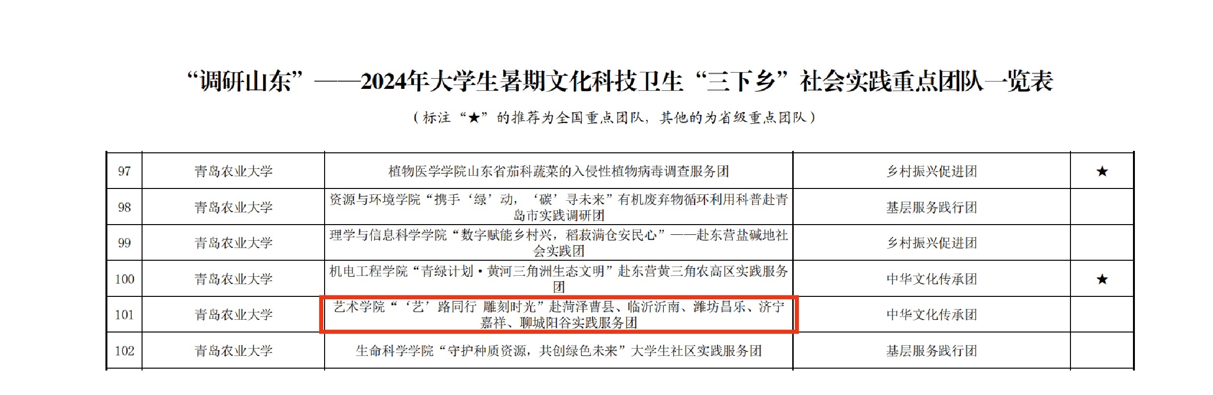 近期,山东省对各单位推报的“调研山东”——2024年老员工暑期文化科技卫生“三下乡”社会实践重点团队进行了审核筛选,综合全省各类别重点团队数量、各单位推荐顺序和团队基本情况等,确定了121个全国重点团队、336个省级重点团队。韦德bevictor“‘艺’路同行 雕刻时光”赴菏泽曹县、临沂沂南、潍坊昌乐、济宁嘉祥、聊城阳谷实践服务团入选省级重点团队。