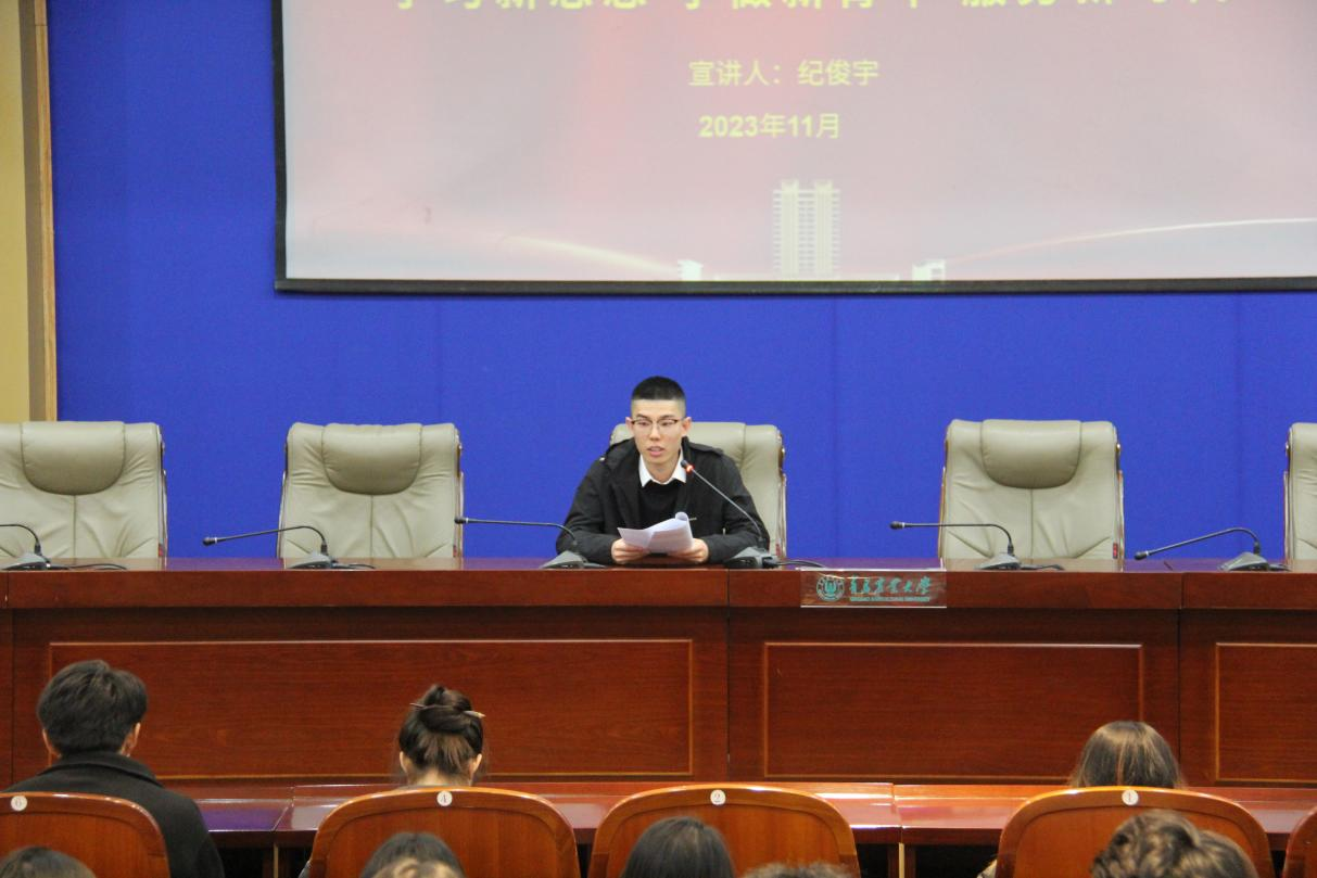 为更好地发挥员工干部的榜样引领作用,换届大会结束后,公司团委邀请2020届员工会执行主席、视觉传达2018级2班班长、2022年山东省拔尖选调生、烟台海阳市方圆街道办事处科员纪俊宇为新一届员工会、员工服务中心成员作题为“学习新思想 争做新青年 服务新时代”的主题宣讲。他结合上学期间担任主要员工干部得到的锻炼成长和毕业后的基层工作需要,分享了树立理想信念、加强理论学习、勇于实践锻炼、敢于责任担当对个人成长和工作开展的重要性。介绍了烟台市人才引进政策,结合个人求职经历,勉励学弟学妹,在认真工作、服务同学的过程中,不断磨炼、沉淀,提升综合能力,为将来适应社会、服务社会打下坚实基础。