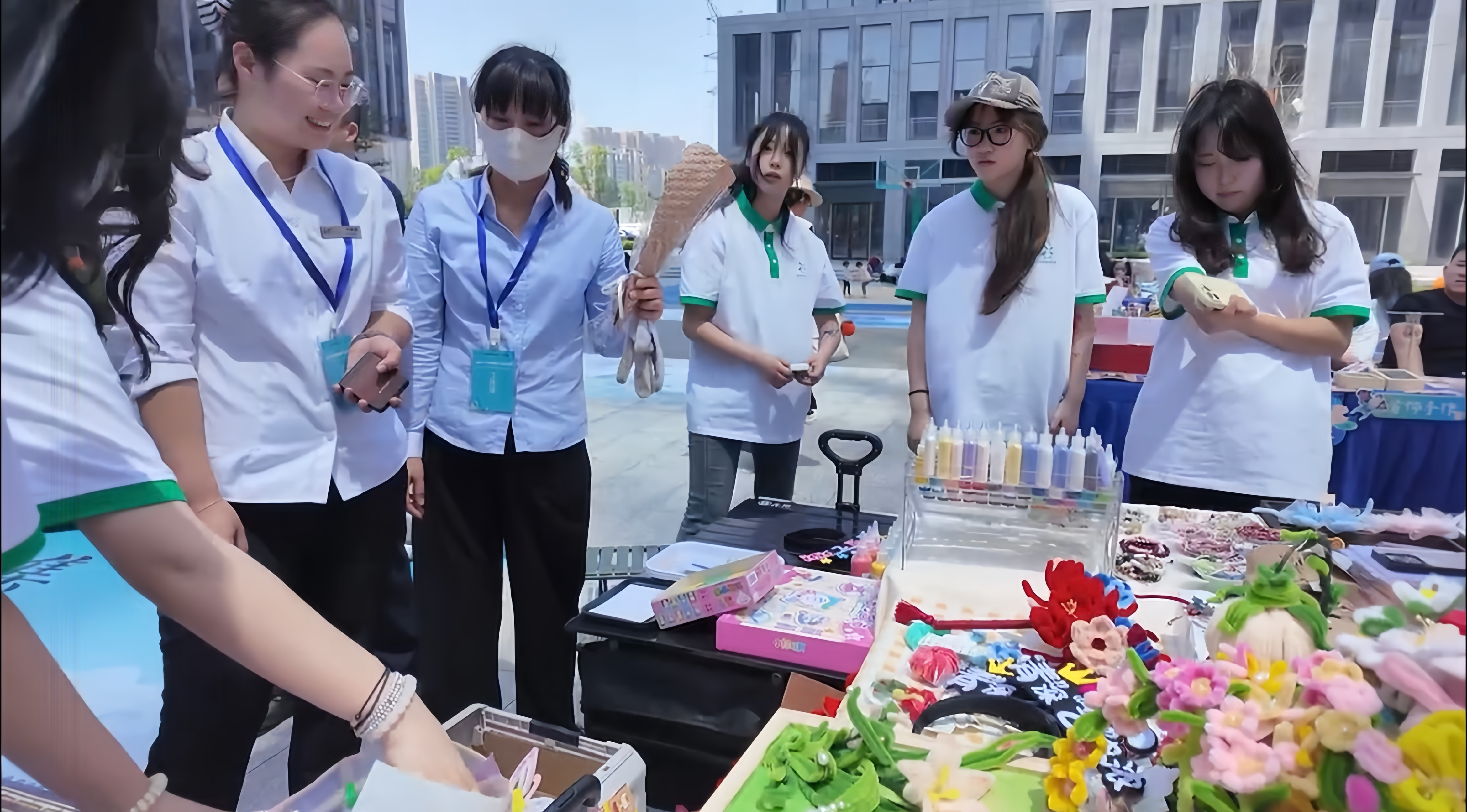 本届文化节暨创意市集最大的特点是借助校企合作渠道,组织同学们携精心制作的各类手工艺品、手绘产品、首饰产品等走出校园、走向社会,搭建了在校生和毕业生共同创作和展示的市集平台,为同学们以“艺”会友、切磋提高提供了交流机会。