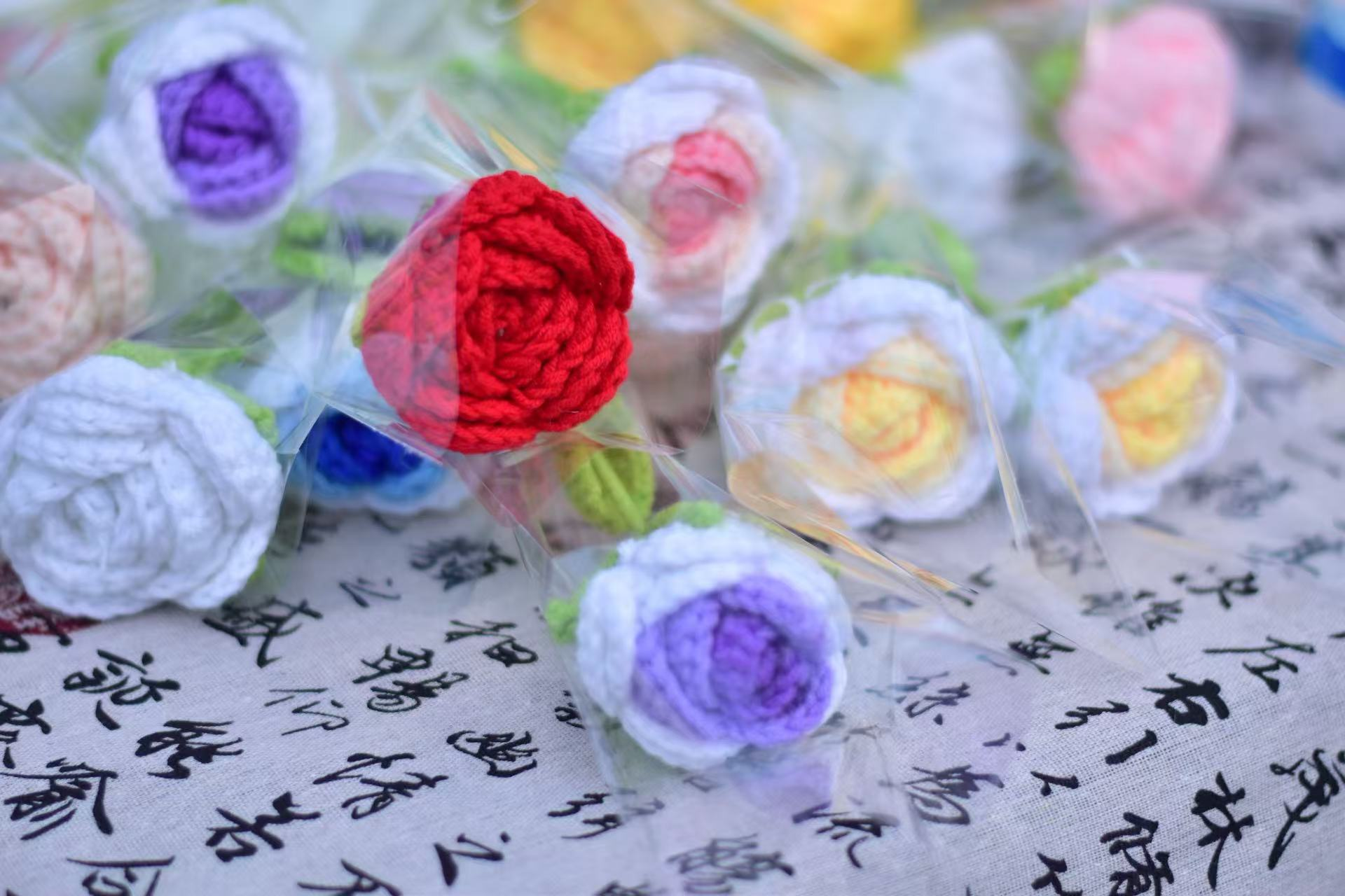 现场,2024级和2023级品牌设计专业联合制作的“春潮扭扭棒”,编织出烂漫花色,受到顾客好评;交互设计2301班与产品设计2301班合作的手工钩织花,将传统手工艺与现代设计理念巧妙融合,兼具实用性和艺术性。其他文创主还展示了多种受时下年轻人喜爱的手作饰品、传统竹编和书法文创等,琳琅满目,各具特色,不仅展示了同学们对传统文化的热爱与传承,更体现了创新思维和艺术创造力。