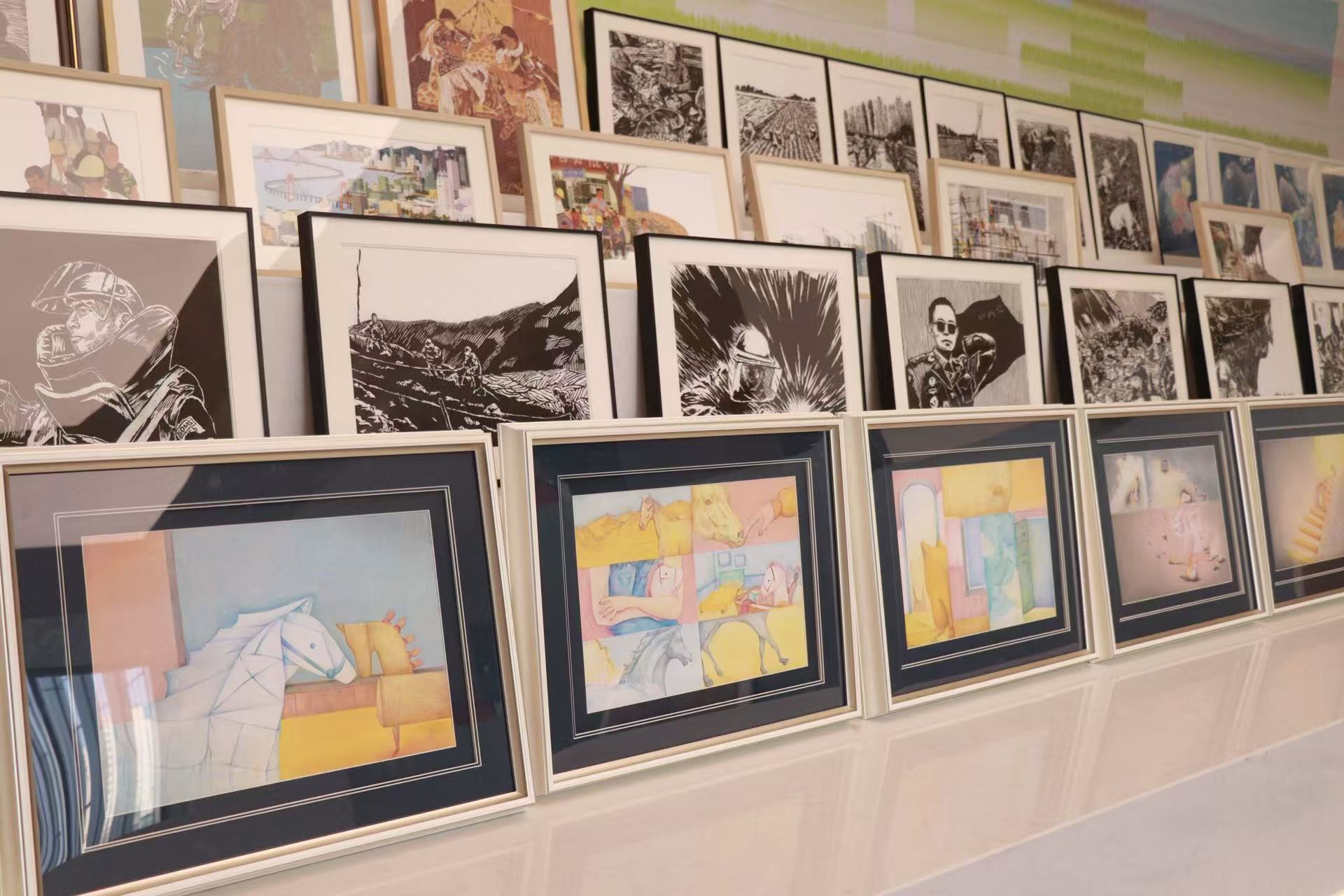 (公司党委书记王天龙为嘉宾介绍员工作品)