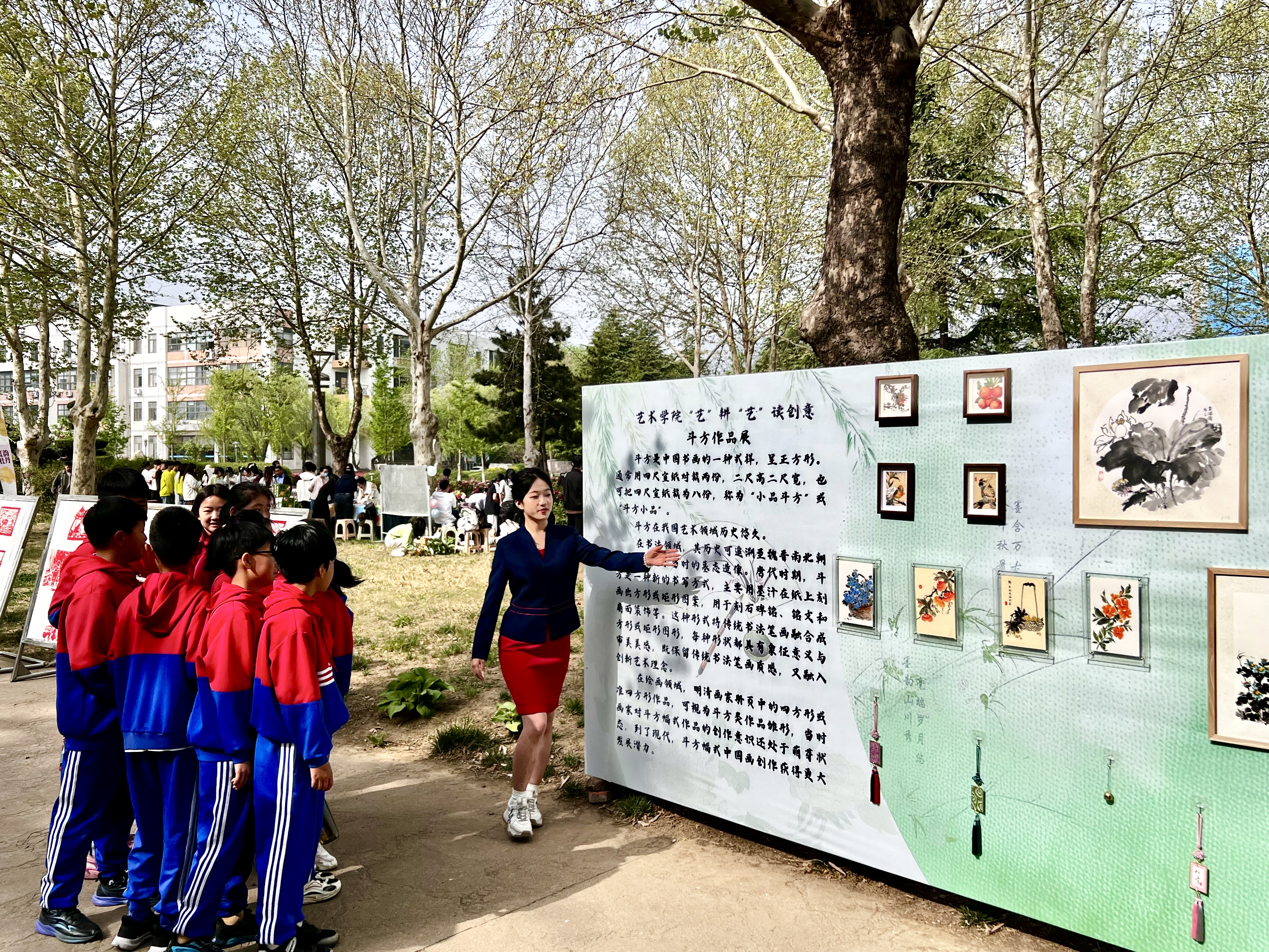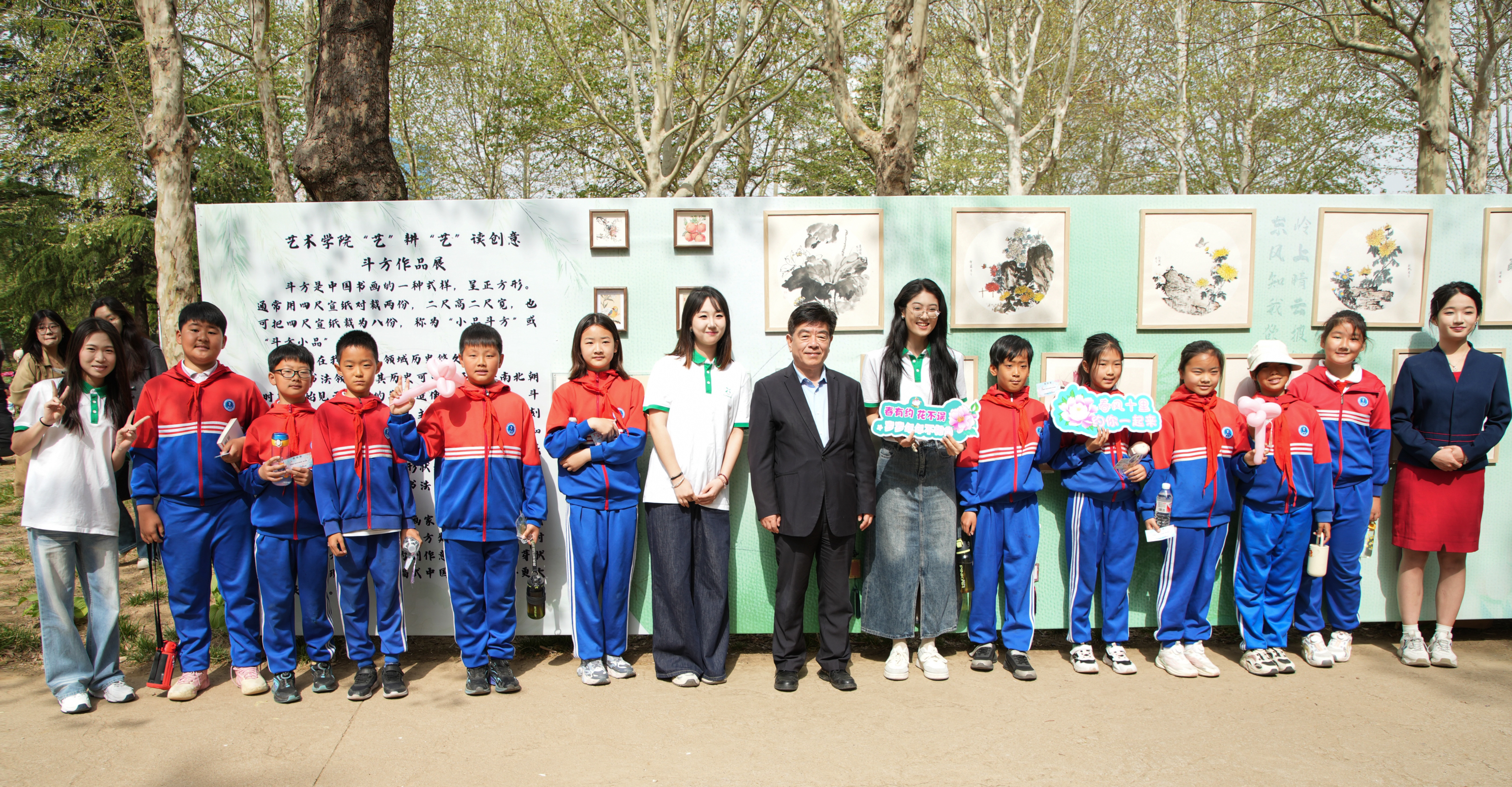 4月18日,由韦德bevictor官网联合城阳区教体局主办的“花样年华 崇农尚美”大中小学思政教育一体化实践活动暨第十三届“虹韵牡丹”游园会在鼎盛花园举行,韦德bevictor“‘艺’耕‘艺’读”写意斗方作品展作为活动子项目同步开展,公司党委副书记田义轲到场指导展览。
