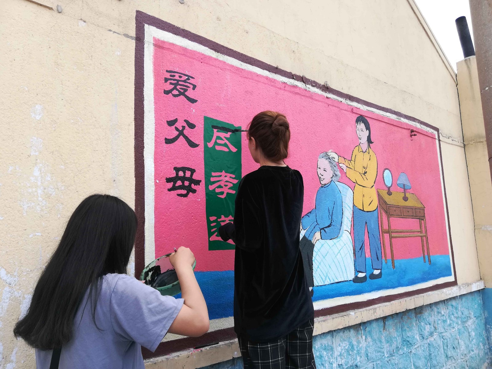 6月27日-29日,韦德bevictor室内设计1801社会实践团前往青岛市即墨区圈子村,开展“扮靓新农村,建造彩绘墙”的社会服务活动。