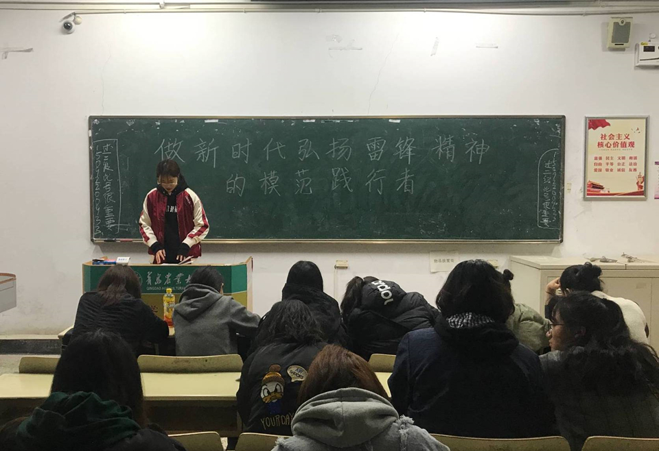 各班团支书向班级同学对“做新时代弘扬雷锋精神的模范践行者”进行了深刻的解读。作为新时代的青年,我们要用习近平新时代中国特色社会主义思想武装头脑,深刻理解雷锋精神的时代内涵,把忠诚于党和人民作为坚定的理想信念和价值追求,将个人的成长同祖国的进步和发展紧密联系在一起,把爱国之情转化为报国之行,争做“雷锋式”的优秀青年。