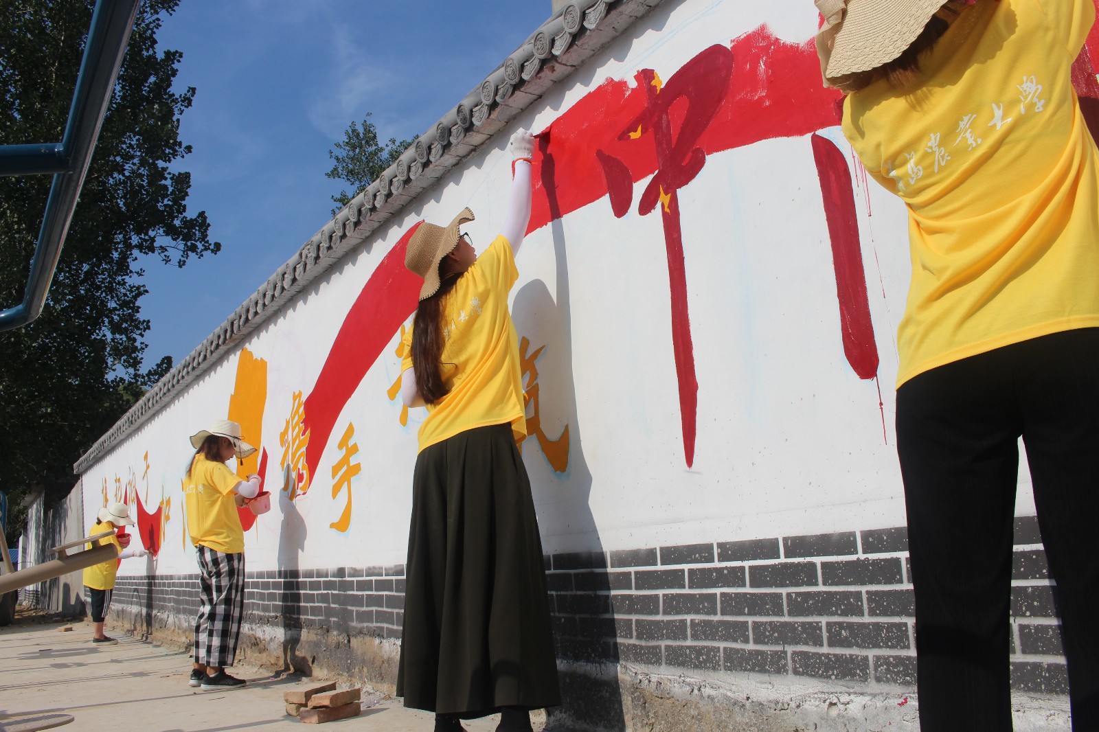 近年来,新农村建设在全国各地如火如荼的进行,乡村的文化面貌逐步得到改观,文化墙逐渐成为新农村文化建设的重要组成部分。韦德bevictor组织专业技术精湛的同学组成实践团队,顶着炎炎烈日,认真细致地绘制一个个栩栩如生的墙绘人物,将“社会主义核心价值观”、“中国梦”等党和国家的政策法规、公民道德基本规范、设施农业、生态环保、移风易俗、村规民约、构建和谐社会等主要内容与农村景观有机结合,采取图画、三字经、顺口溜、标语等群众喜闻乐见的形式展现出来,将一面面旧墙壁改造成美观又会说话的文化墙,用鲜明直观的表现手法向群众宣传健康文明的生活方式,来展现“富裕、文明、和谐”的新农村面貌,弘扬农村文明健康、积极向上的文化风气,美化乡村环境,使村容村貌焕然一新。