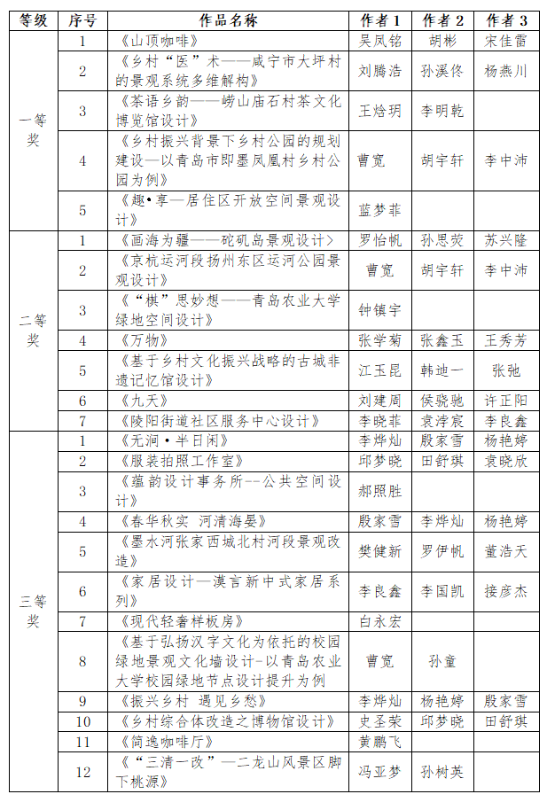 表1 韦德bevictor官网第三届环境艺术创新创意设计大赛获奖名单