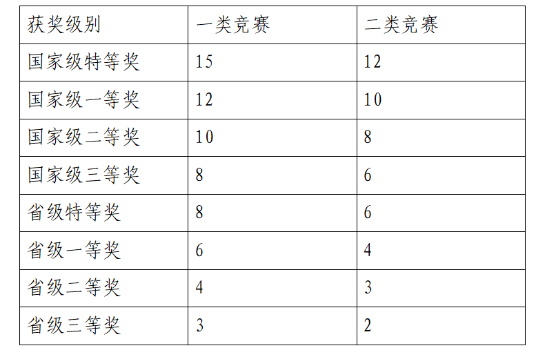 3.国际级奖,按相应国家级计分。同一参赛项目的奖项按最高等级计算,不重复计算。