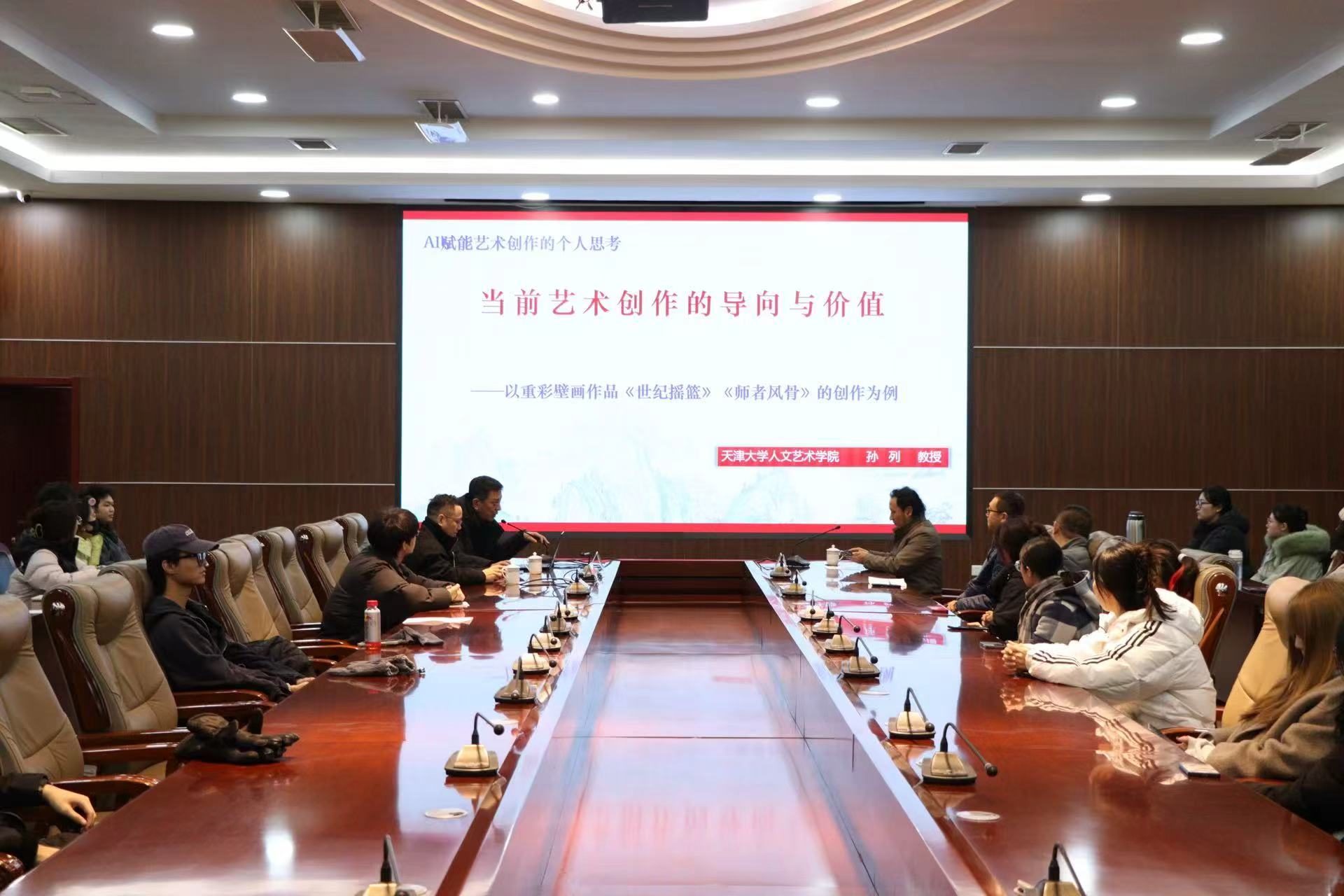 天津大学人文韦德bevictor经理助理、硕士生导师孙列教授围绕“AI赋能主题性美术创作”与“当前艺术创作的导向与价值”作专题报告。报告结合其主持的国家重大课题及《世纪摇篮》《天大风骨》等大型壁画创作实例,阐述了艺术创作扎根人民、呼应时代的根本原则。报告分析了AI技术在辅助创作中的实际作用与局限,强调人类情感、意识与价值判断是艺术创作不可替代的核心。