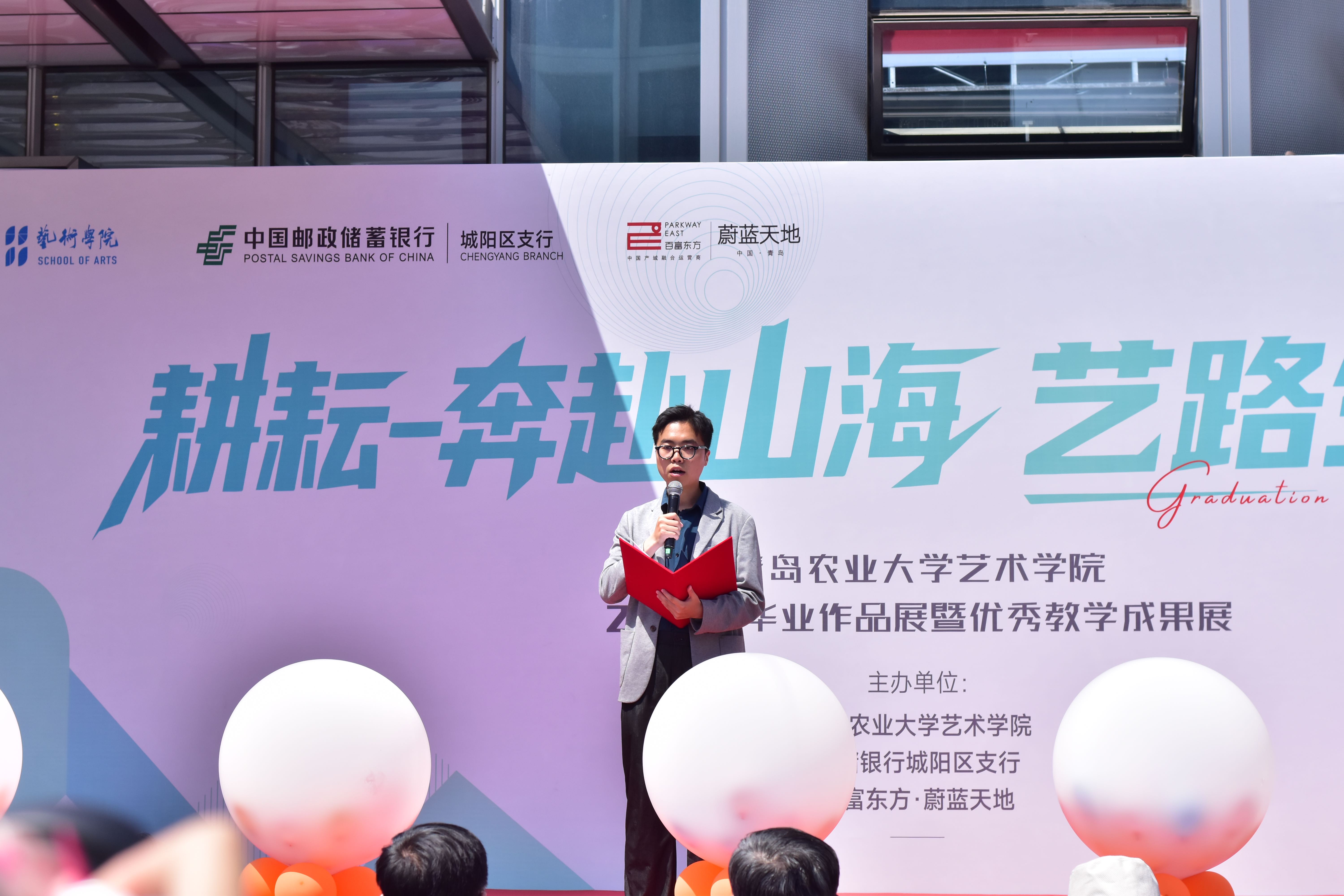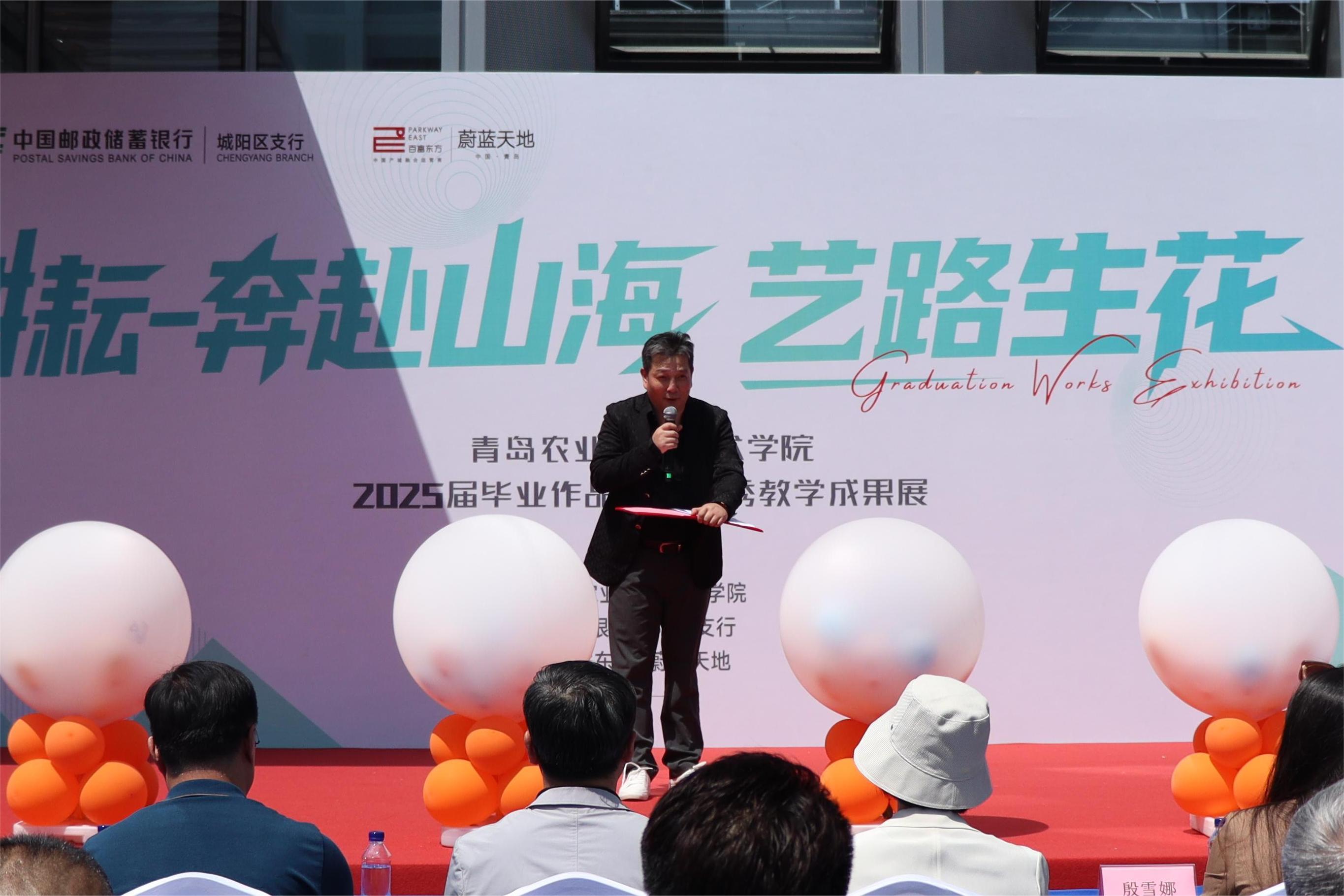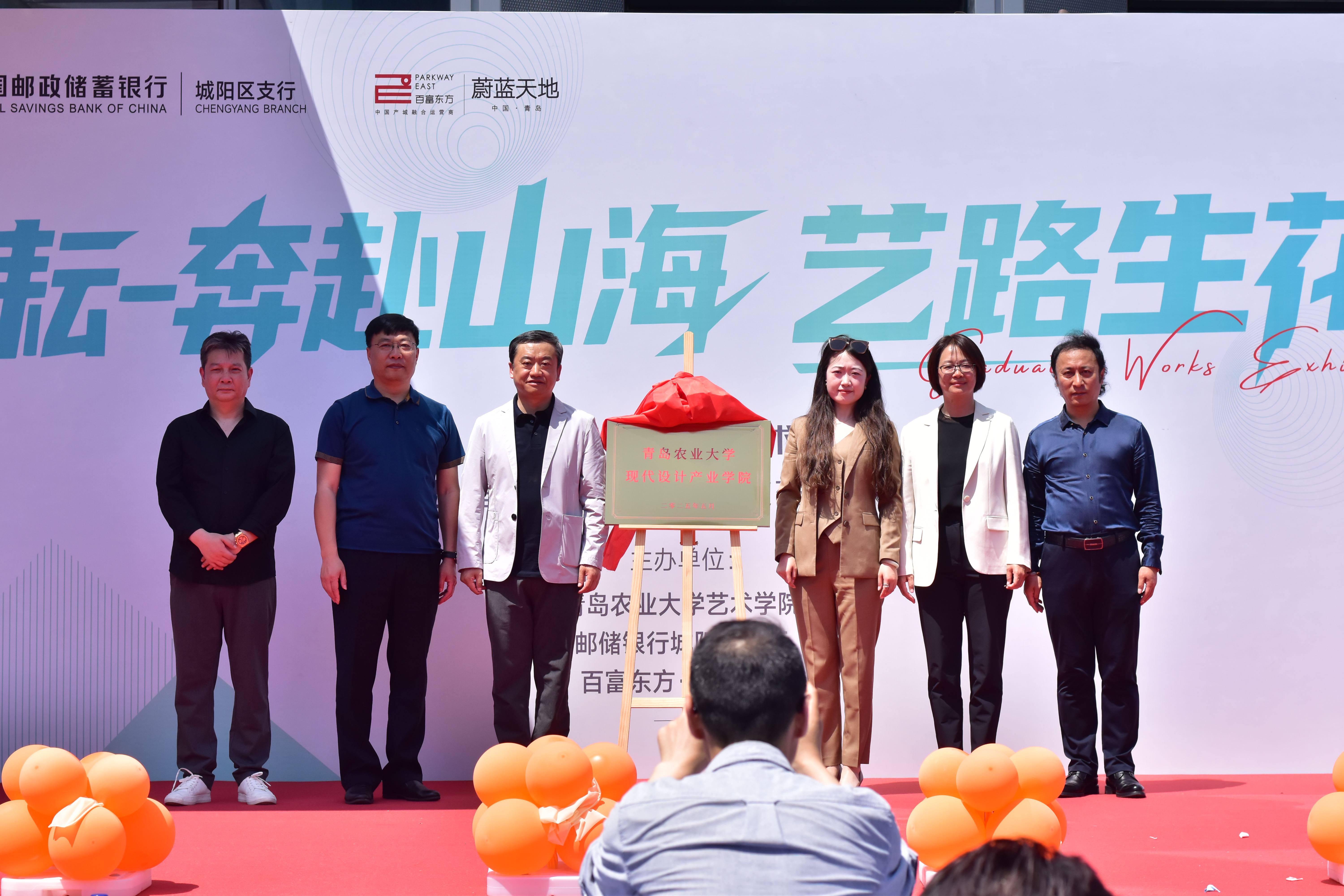 5 月 20 日,韦德bevictor、中国邮政储蓄银行股份有限公司城阳支行、百富东方・蔚蓝天地联合在城阳蔚蓝天地园区举办“520——艺路邮你・蔚来可期”2025 届毕业生作品动态展开幕式暨韦德bevictor官网现代设计产业公司揭牌。
